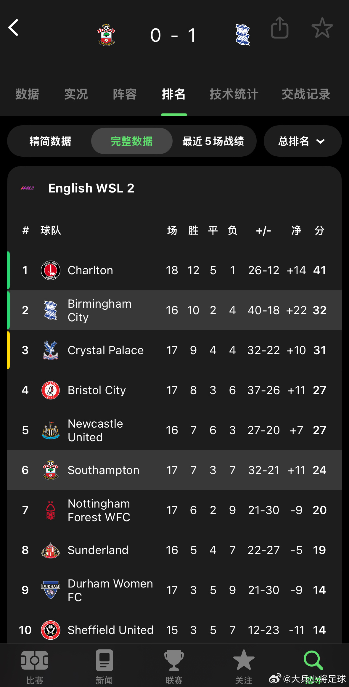 WSL2 第17轮|南安普顿0-1伯明翰宮川麻都在第62分钟替补登场,并在第76
