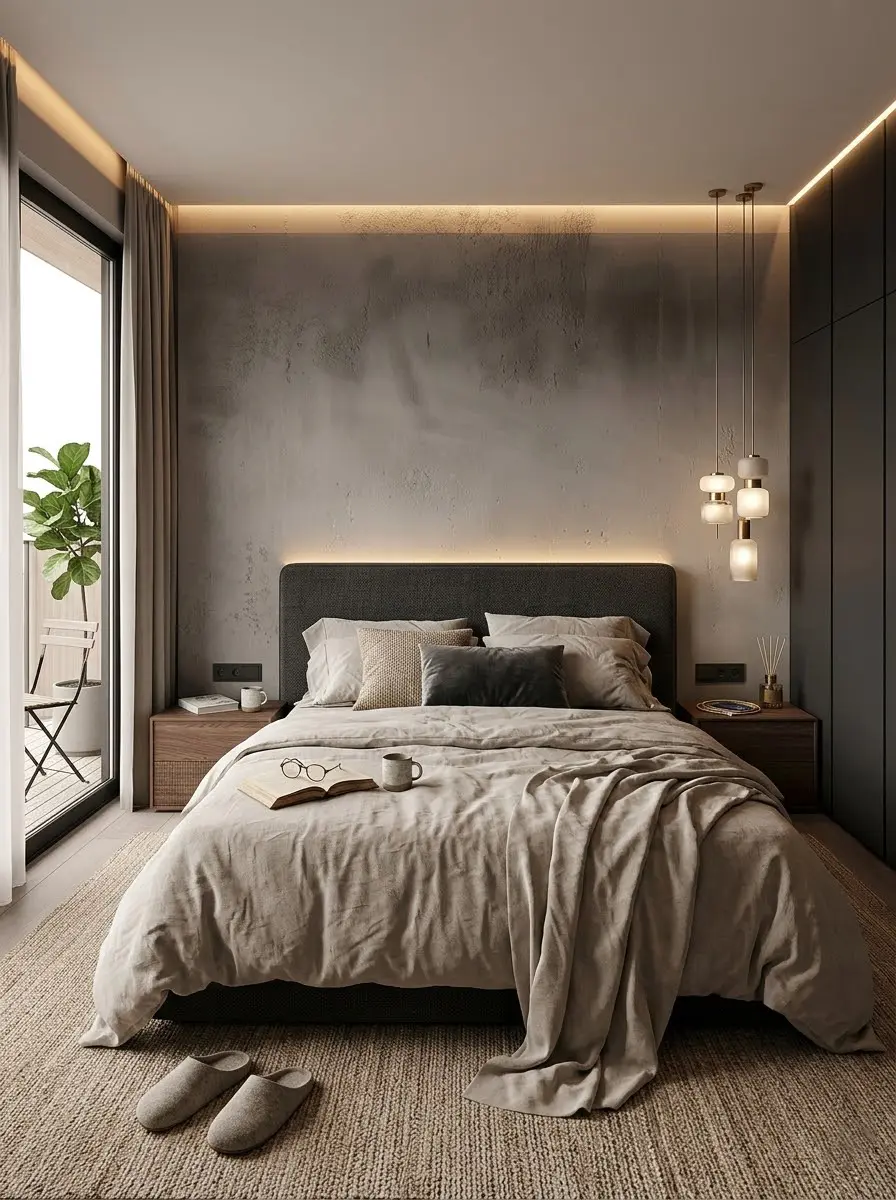 材质触感: 我们选用了富有肌理感的艺术涂料与细腻皮革,弱化了建筑的生硬,让“极简”不再是冷冰冰的符号,而是触手可及的柔软与舒适。🛋️