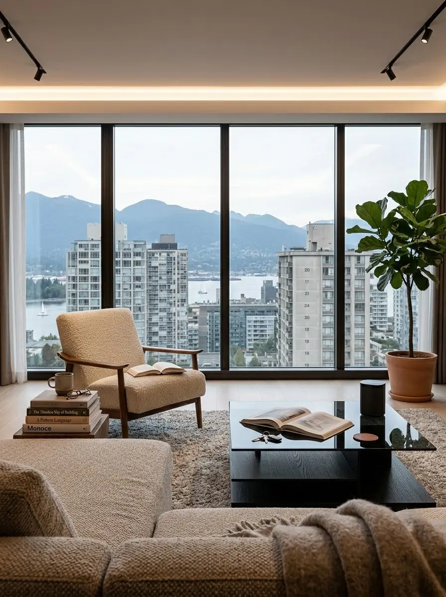 光影韵律: 空间以高级灰与温润木质为基调,无主灯设计配合大面积落地窗,将天际线景观引入室内。光影在极简线条间流转,每一寸角落都透着低调的奢华质感。🌆