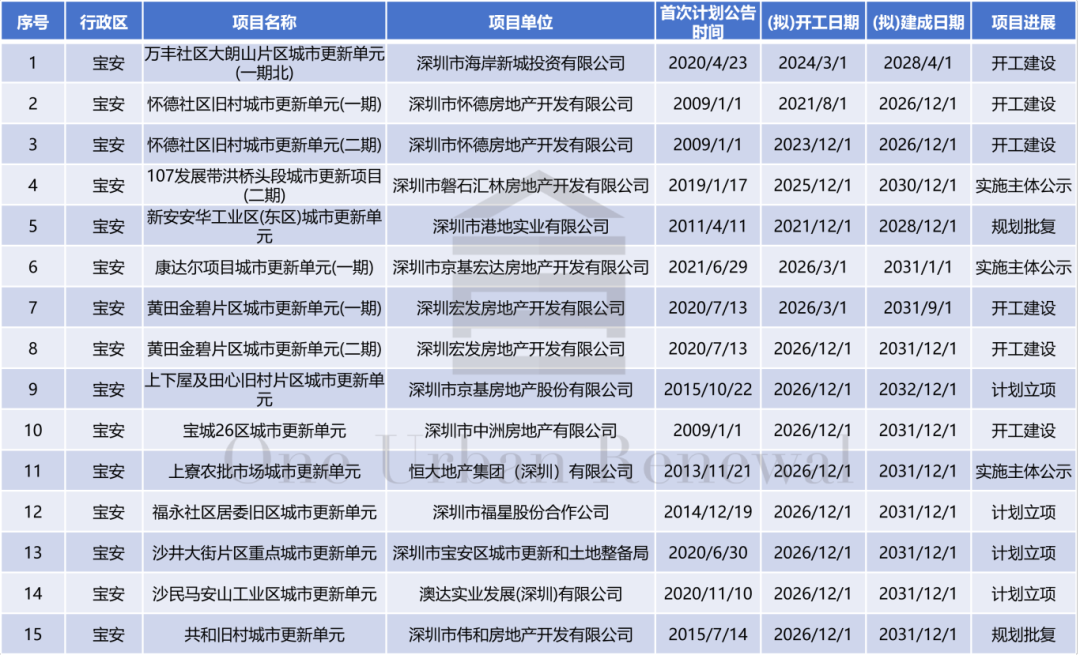 通过对深圳34个有明确主导企业、申报主体或意向单位的旧改项目进行梳理,不难发现,其中有多个项目已经启动,并且是具备入市的条件的。