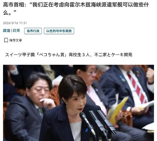 日本顶不住压力了!赫格塞斯一通电话之后,高市早苗的口风松动了!3月16日,根据产经新闻报道,在赫格塞斯跟小泉进次郎谈及日本派军舰到霍尔木兹海峡护航之后,16日在参议院预算委员会会议上高市早苗对此事也进行了回应。高市早苗表示,关于向霍尔木兹海峡派遣军舰一事,我们正在考虑。