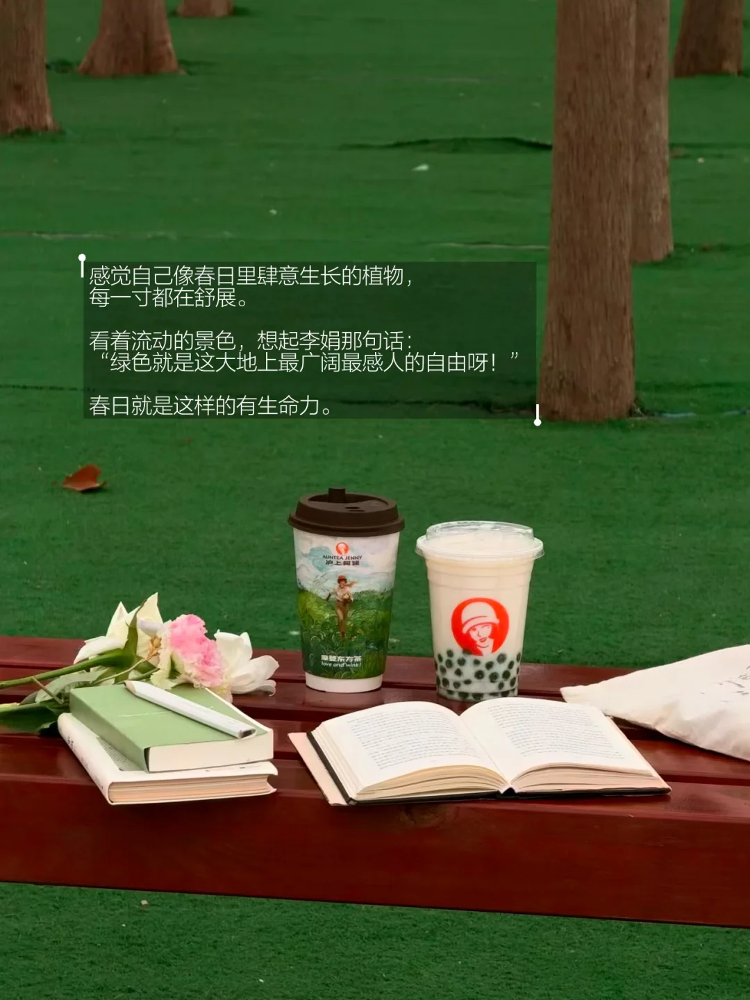 感觉自己像春日里肆意生长的植物,每一寸都在舒展。看着流动的景色,想起李娟那句话:“绿色就是这大地上最广阔最感人的自由呀!”春日就是这样的有生命力。