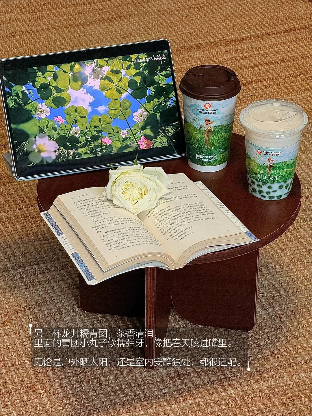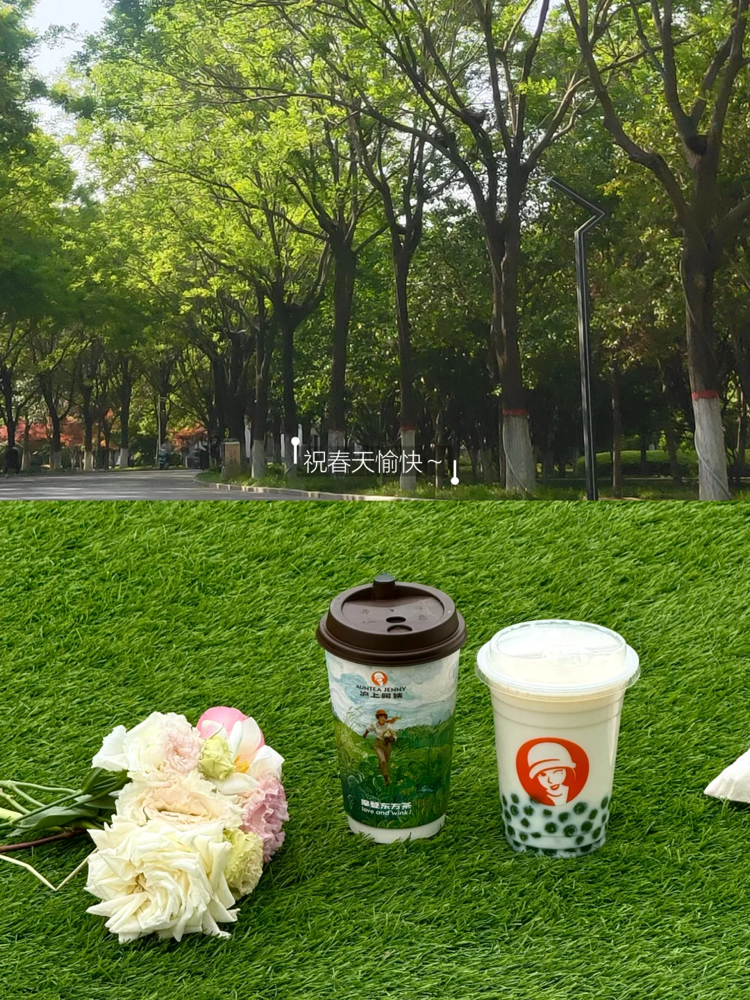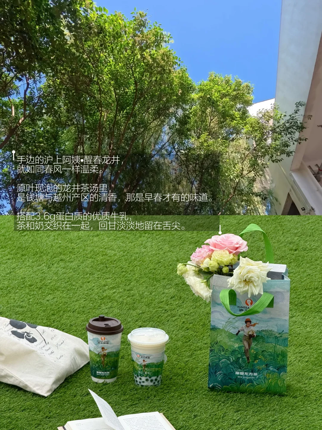 手边的沪上阿姨·醒春龙井,就如同春风一样温柔。原叶现泡的龙井茶汤里,是钱塘与越州产区的清香,那是早春才有的味道。搭配3.6g蛋白质的优质牛乳,茶和奶交织在一起,回甘淡淡地留在舌尖。