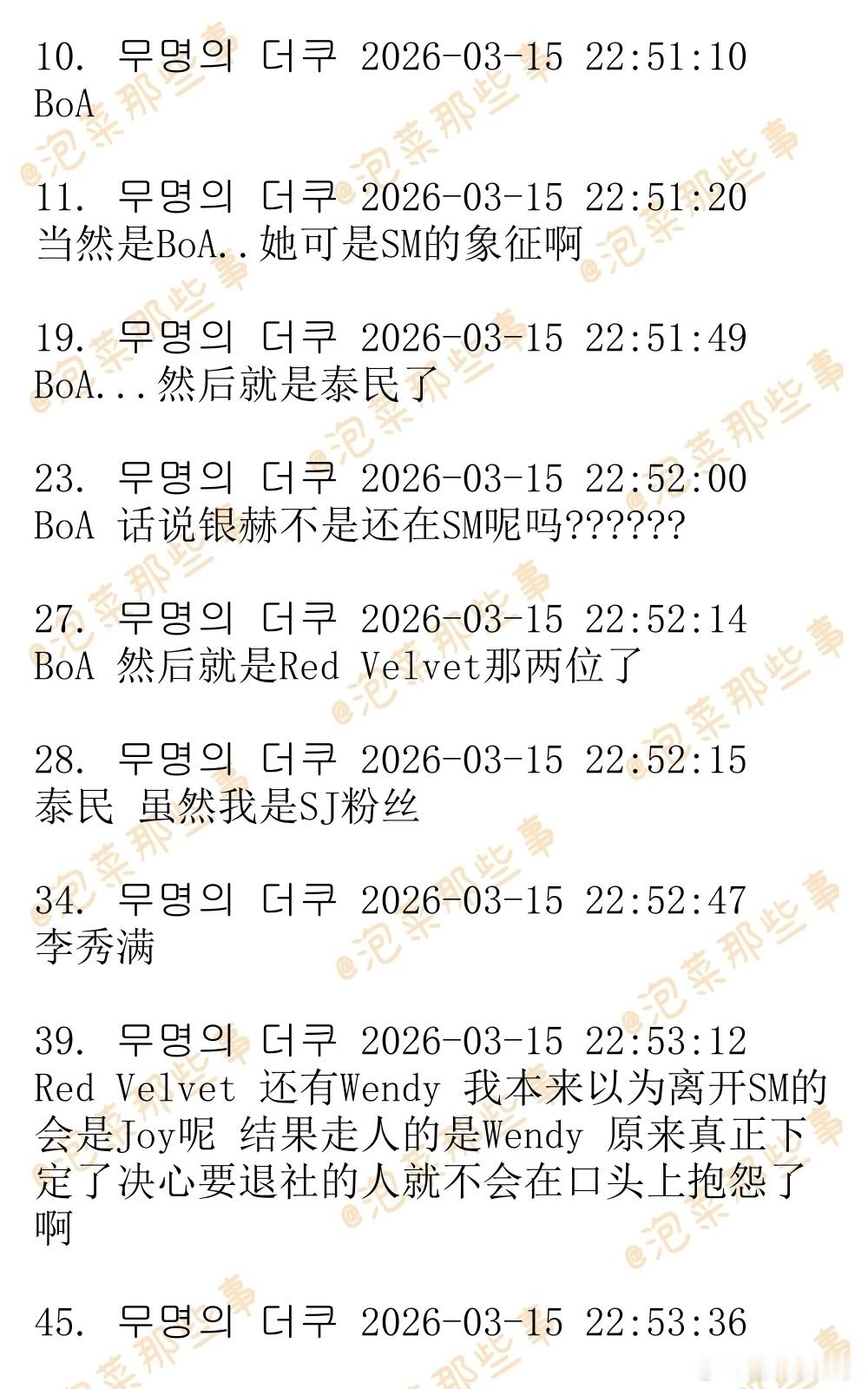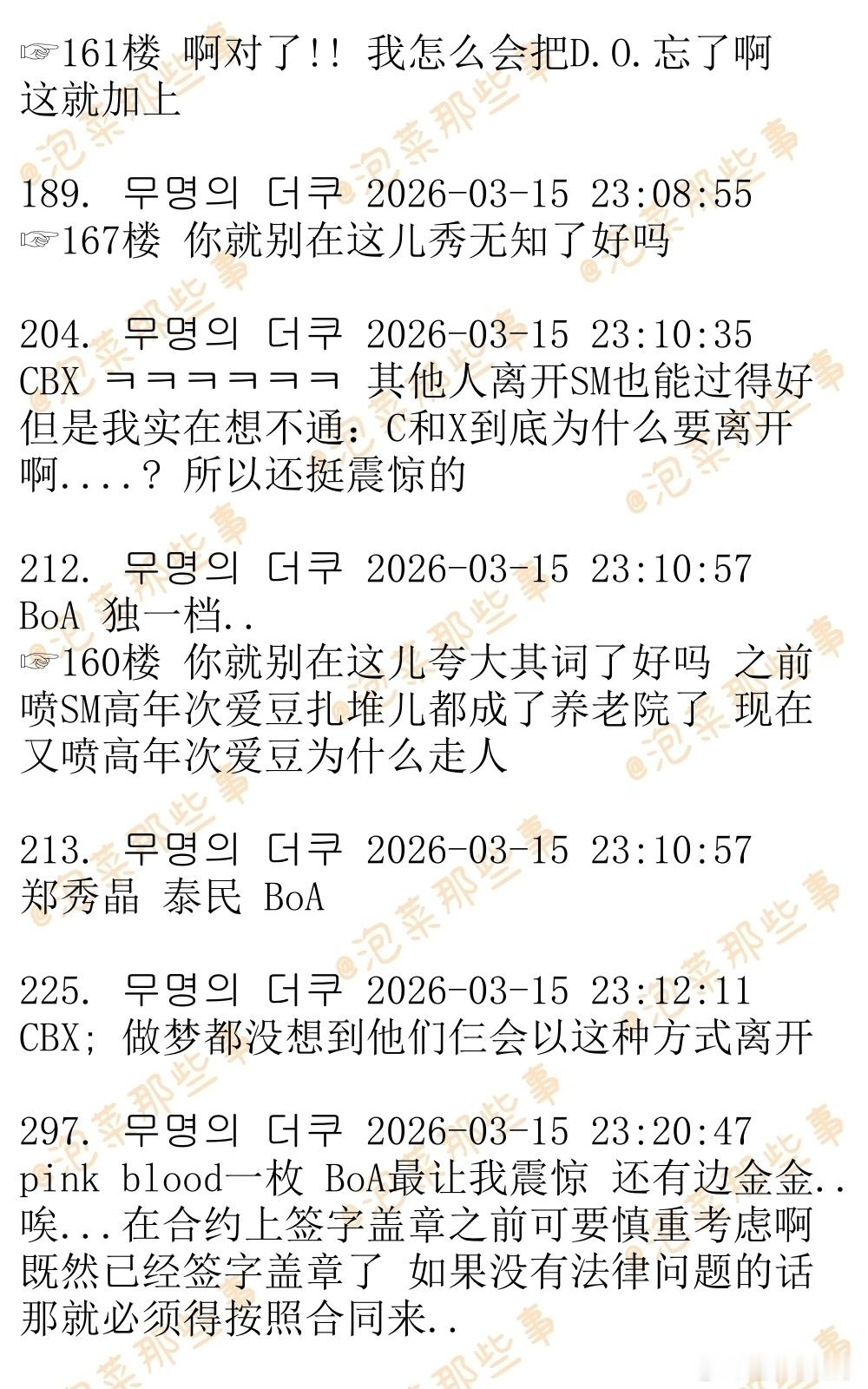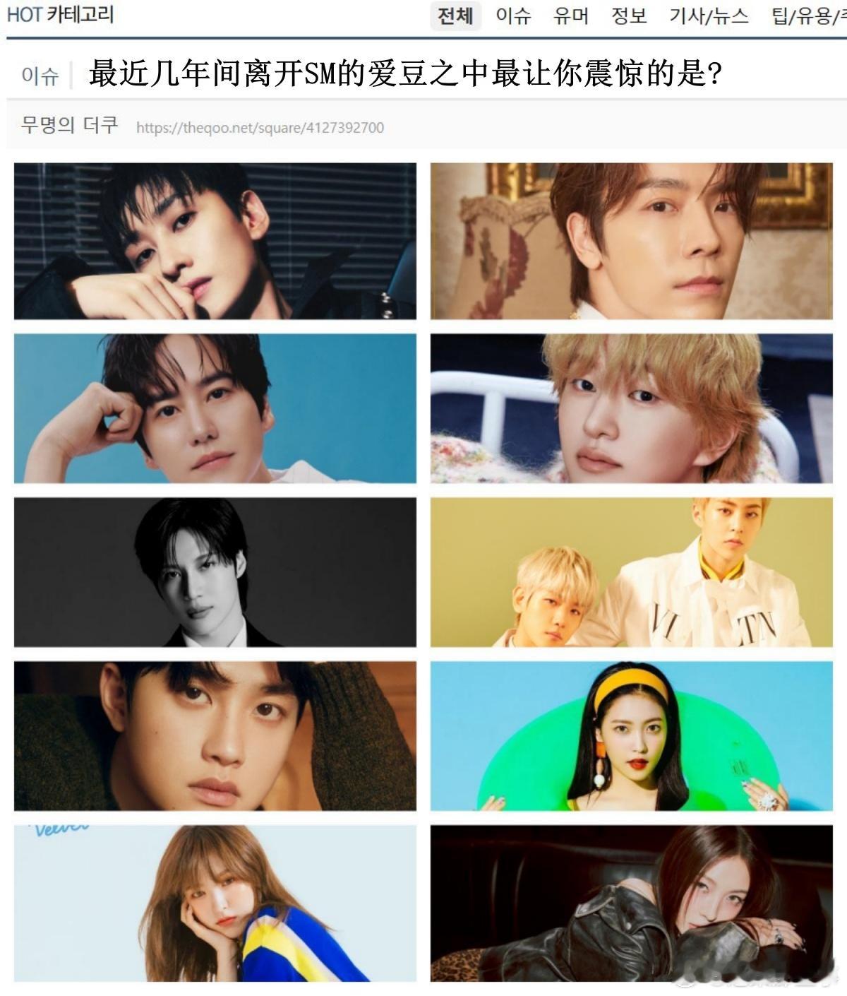 🔥🔥韩网700楼热帖评论翻译🔥🔥最近几年间离开SM的爱豆之中最让你震惊的是?SUPER JUNIOR 银赫SUPER JUNIOR 东海SUPER JUNIOR 圭贤SHINee 温流SHINee 泰民EXO 秀珉EXO 伯贤EXO CHENEXO D.O.Red Velvet WendyRed Velvet Yeri BoAcr.theqoo