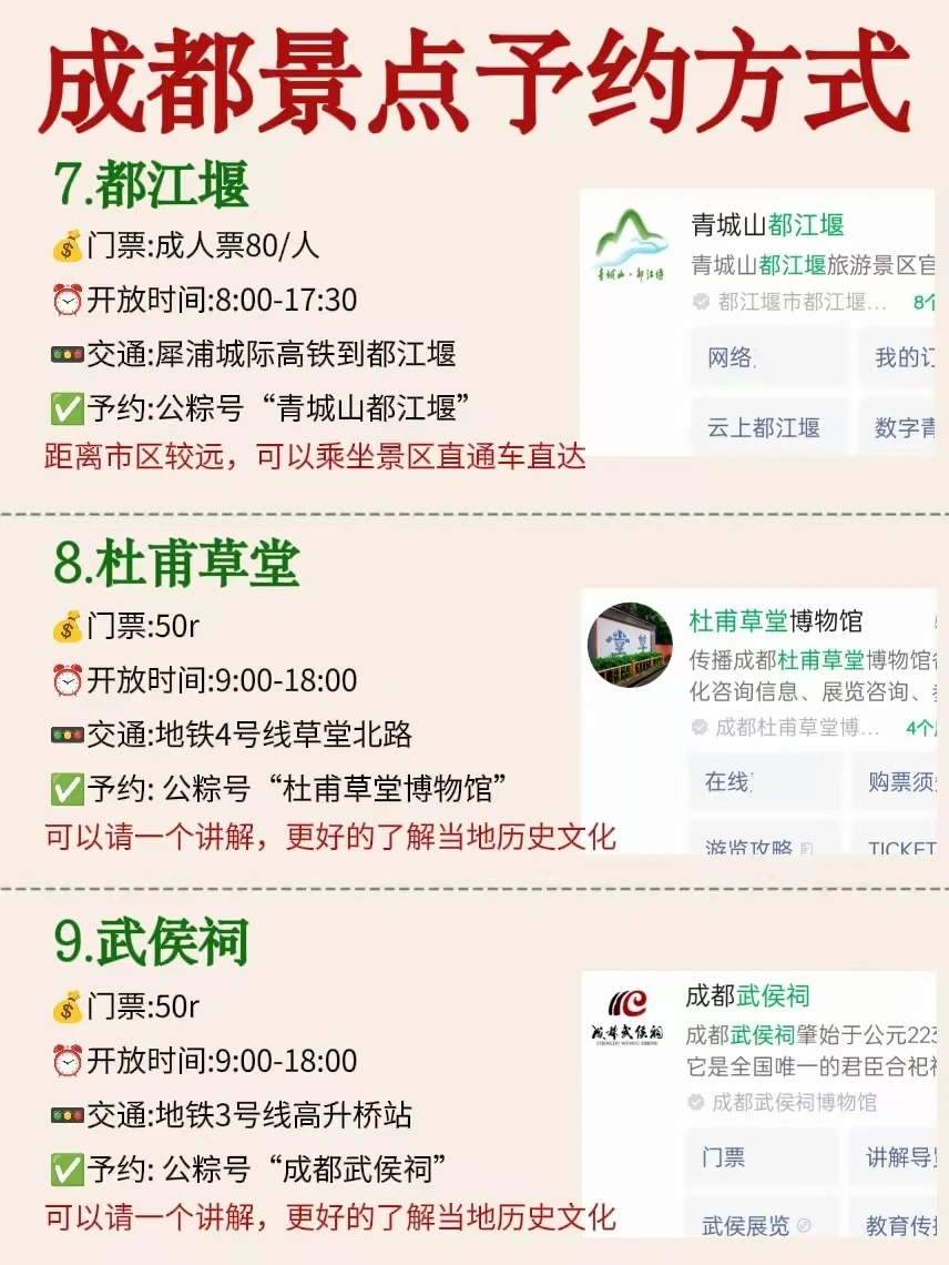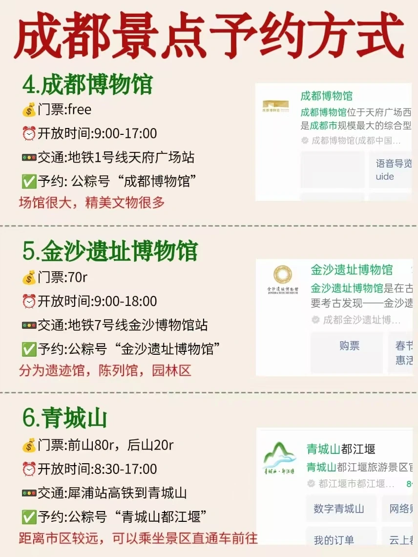 天啦噜‼️太全了🙌🏻成都各大景点预约☀️