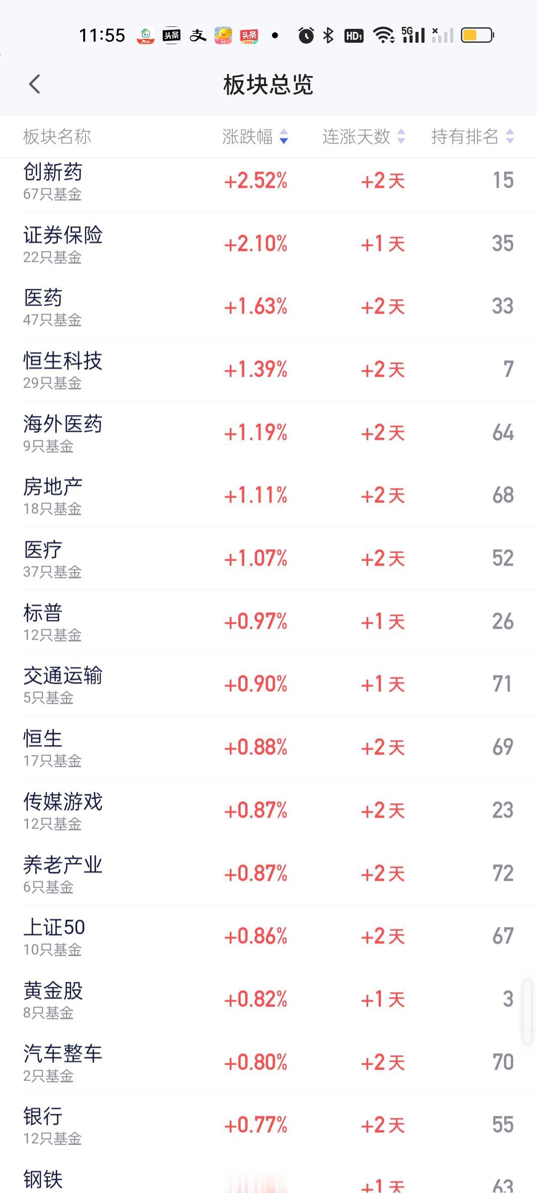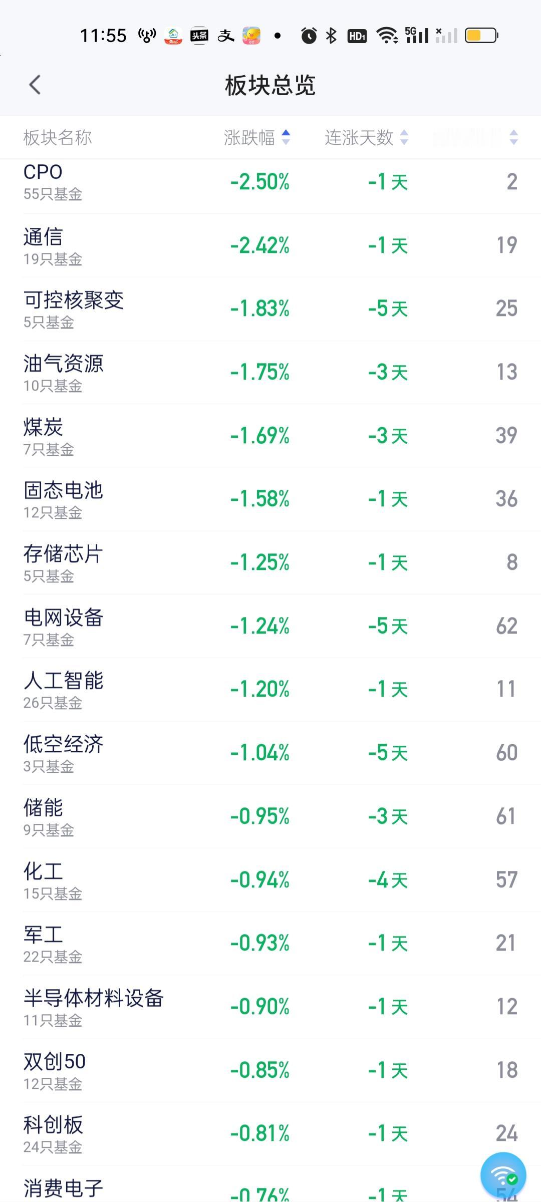 从中午收盘的板块榜来看,今天涨幅靠前的板块都是比较冷门的板块。创新药,证券保险,医药,恒科,房地产,医疗等涨幅居前,跌幅靠前的是CPO,通信,可控核聚变,油气资源,煤炭,固态电池,存储芯片,电网设备,人工智能,低空经济,储能,化工,军工,半导体材料设备等。