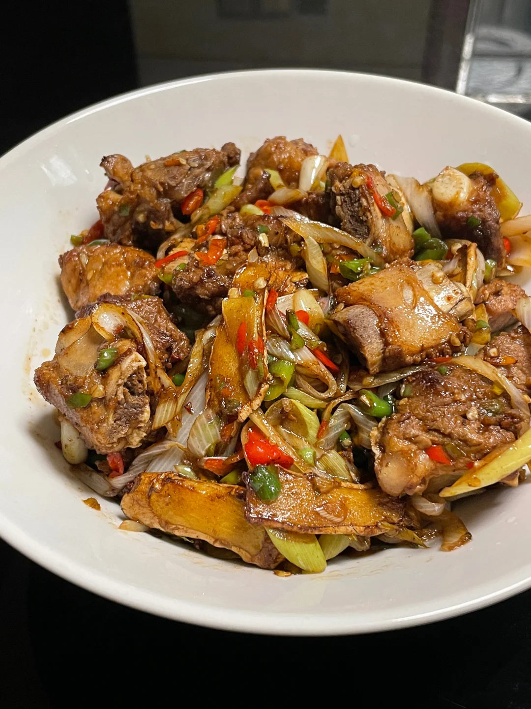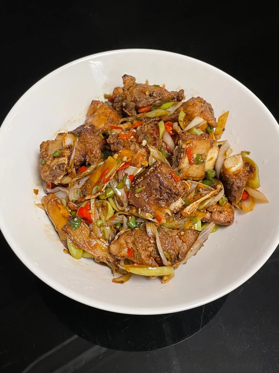 今日菜谱[庆祝R] 大葱炒排骨 肉沫豆腐 炒杭白菜