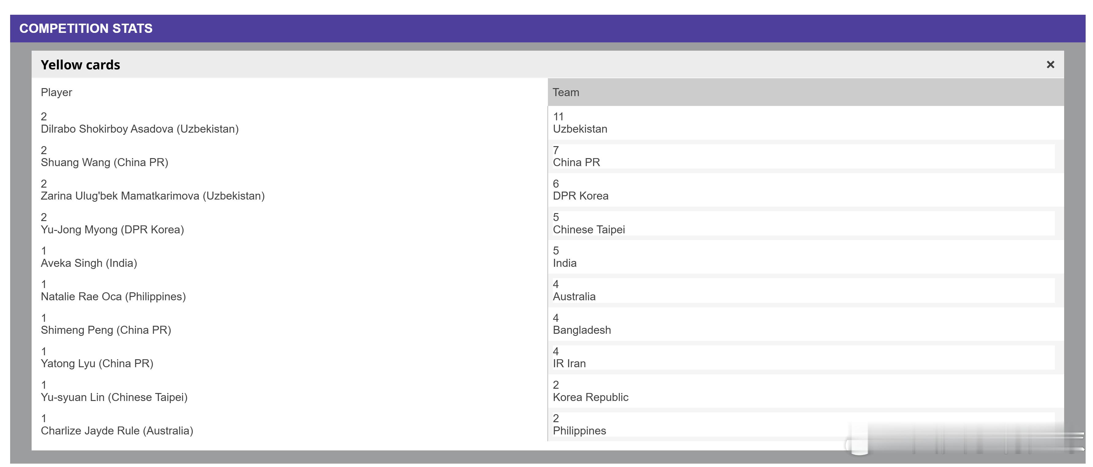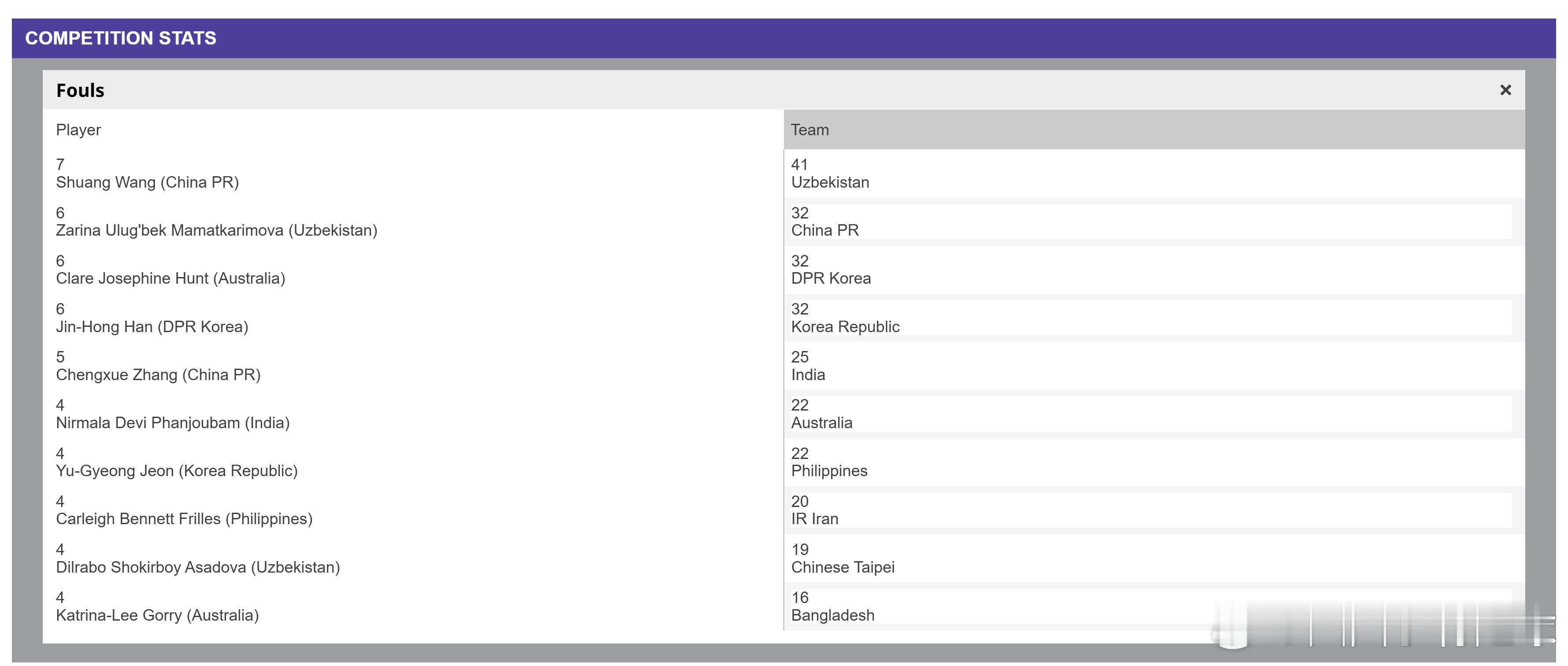 玫瑰在过去4场比赛中失球数比玛蒂尔达更少,但犯规数在四支半决赛球队中排名最高(32次,与韩国并列,玛蒂尔达22次,日本没有被统计在内,从比赛内容看,估计日本队犯规次数少于10次)。从全队得黄牌数看,玫瑰最高(7张),玛蒂尔达4张,韩国2张,日本队没有进入统计(估计是0张)。