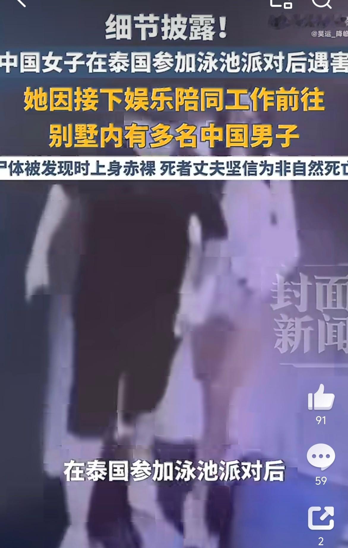 泰国遇害34岁女子生前连发7条救我 先不说道德问题,我看有很多人再说这女子参加泳池派对的事。这些不管怎么说吧,罪不至死吧?