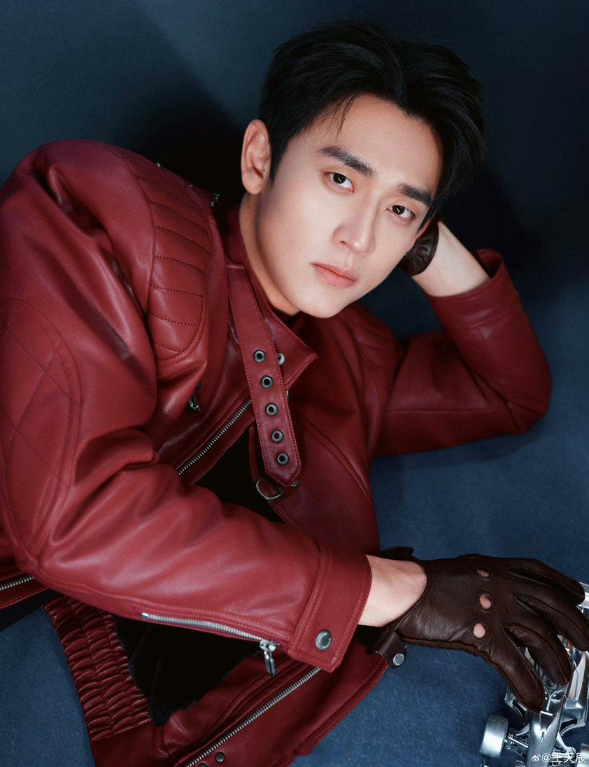 派酱安利 王天辰酒红色皮衣机车服有人穿皮衣是装酷,穿皮衣是本来就酷!简直就是痞帅和黑白滤镜的神~