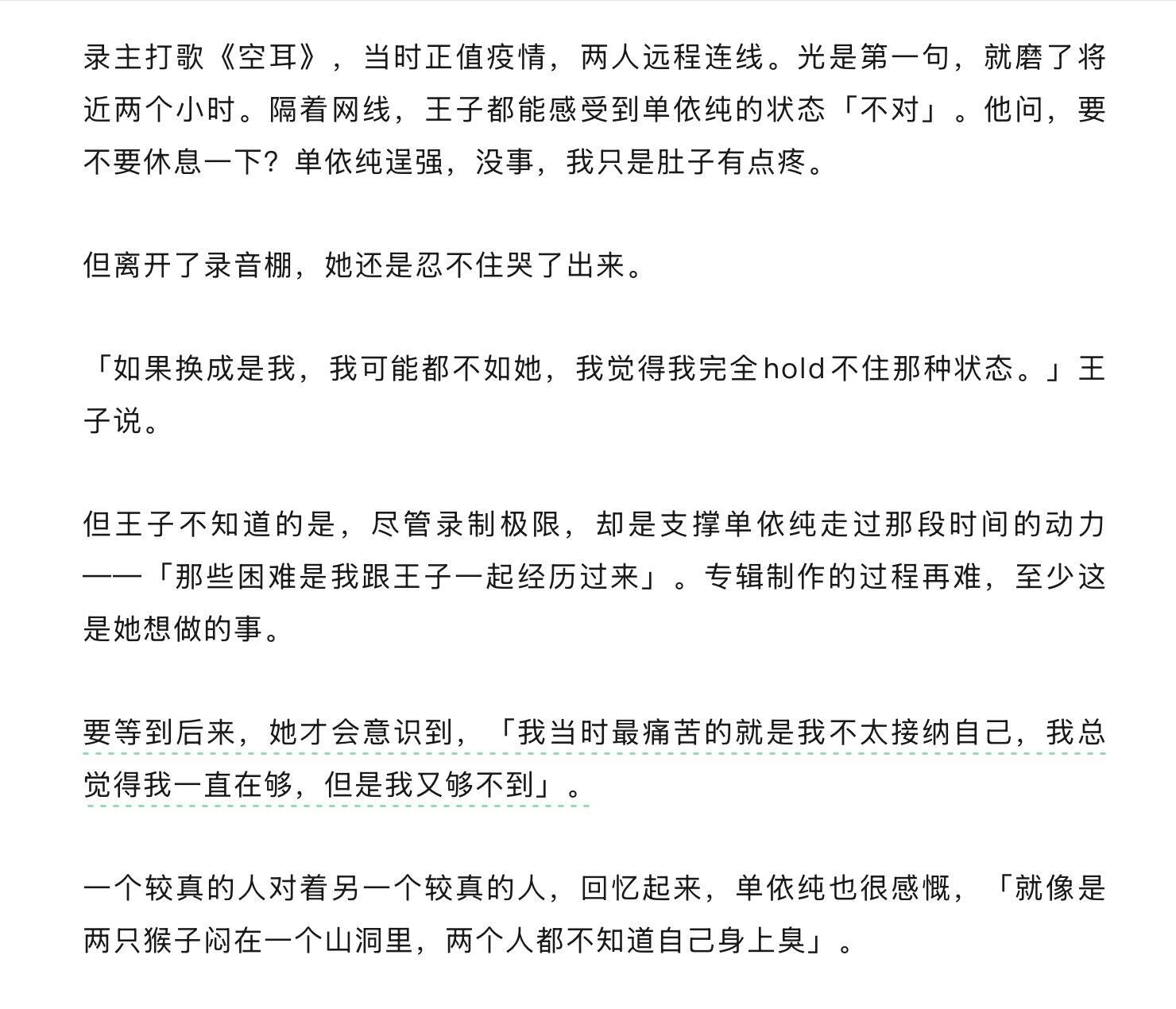 两万字里最心疼的部分看哭了一次又一次现在才真正理解以前依依落泪的缘由是因为想做好听的音乐 尊重音乐和观众于是落在状态不佳没能如预期呈现作品时是因为过往的经历不那么明媚灿烂于是落在演唱萱草花前读妈妈写的信一巡看粉丝生日祝福mv和听到台下的“感谢你成为单依纯”向日葵朝着夜🌻跨年彩排唱到“蔚蓝的天 我要飞得很远 飞到盼望的人看不见”时“我用音乐把我自己重新养了一遍”音乐是出口 还好有音乐把你带到我们面前让你成为我们现在看到的单依纯灰色的天变得蔚蓝小小的愿望也在实现你可以飞得很远很远了但不再是孤单一人有人牵挂 有人同路 有人支持和追随都在盼望着和你的相逢