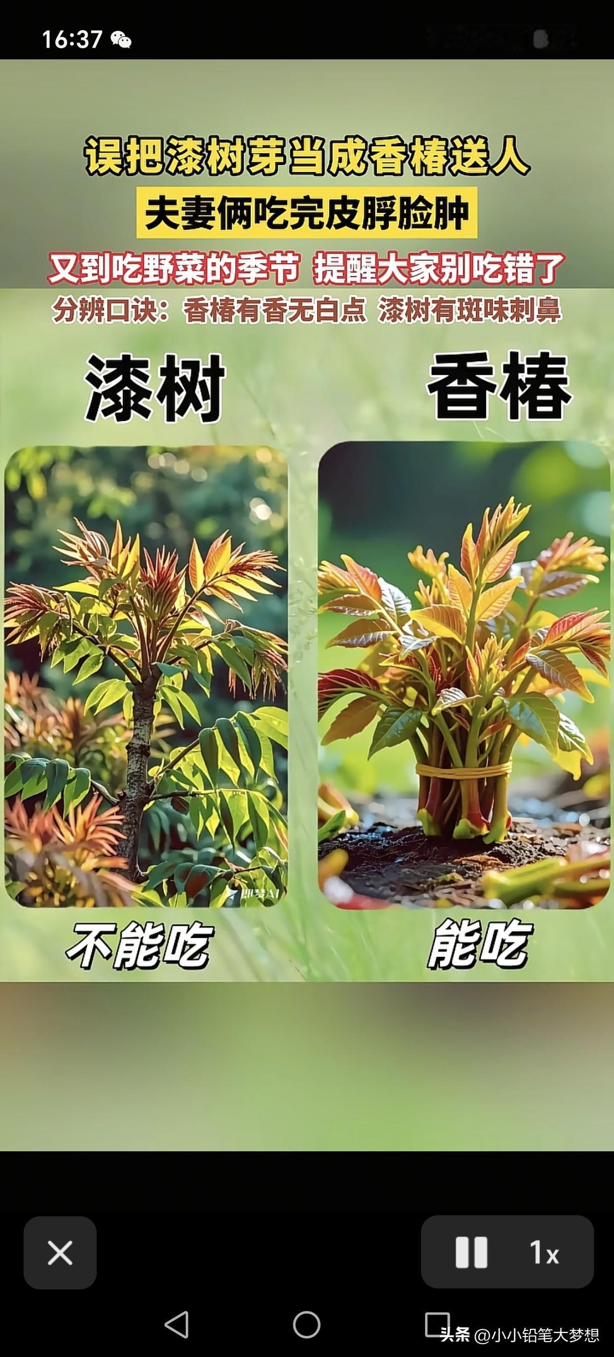 “客户太热情也不一定是好事,给我送的东西,吃的我一脸包!”看了这个视频,笑死我了,云南一位朱大哥,他是长期买卖二手工程车、搅拌车、翻斗车、洒水车等。 近日,在他这里买了一辆车的朋友特意给他送去了一包“香椿芽”,让他尝尝鲜,他非常高兴就拿回家让媳妇做来吃,两人吃完之后就皮脬脸肿了,两人都懵逼了,然后拿出了剩下的“香椿芽”仔细看了一下,才发现这根本就不是香椿芽,而是漆树的芽。 漆树芽跟香椿芽长得非常像,一般人还真看不出来,所以他特意拍了个视频出来,奉劝大家一定要辨别清楚,不要像他们一样。 简直笑死,这位大哥“十年说车无人晓,一朝漆树众人知!” 漆树这个东西别说是吃了,在它的旁边路过也有可能脸肿,皮肤过敏。 漆树芽与香椿的关键区别,香椿能够明显地闻到很浓烈的味道,但是漆树芽几乎无味 。 而且漆树芽折断的根部有白色汁液,而香椿没有。 春天到了,又到了吃野菜的季节了,大家在吃野菜之前还是慎重甄别吧。