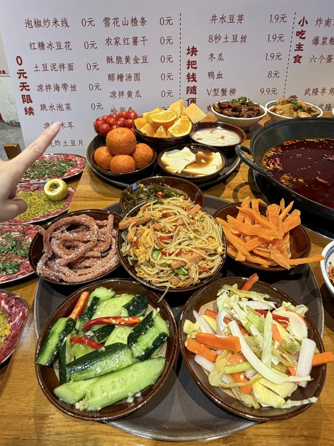 很难相信这是深圳2026的物价。。。 0r无限续的小吃!全都是重庆特色小吃!! 红糖冰豆花!!泡椒炒米线!!土豆泥拌面!! 还有低至1r的素菜,现在的餐饮卷的没边啊。。。