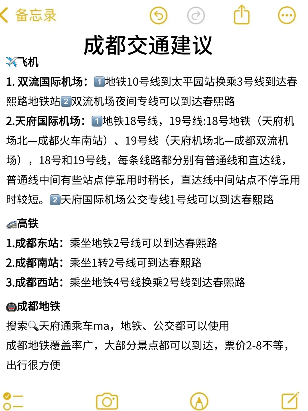 春节假期要来成都玩的姐妹👭请查收这份超全旅游攻略✅给大家整理了一下成都避雷、交通、住宿、美食这些旅游攻略,有需要的姐妹们可以收藏住噢~
