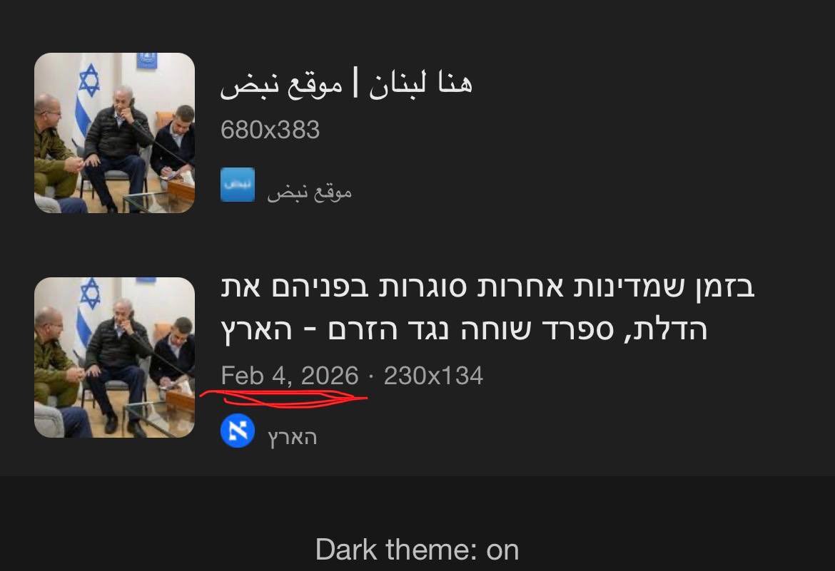 今天在以色列总理官方账号上发布的比比的照片似乎是2026年2月4日的老照片。