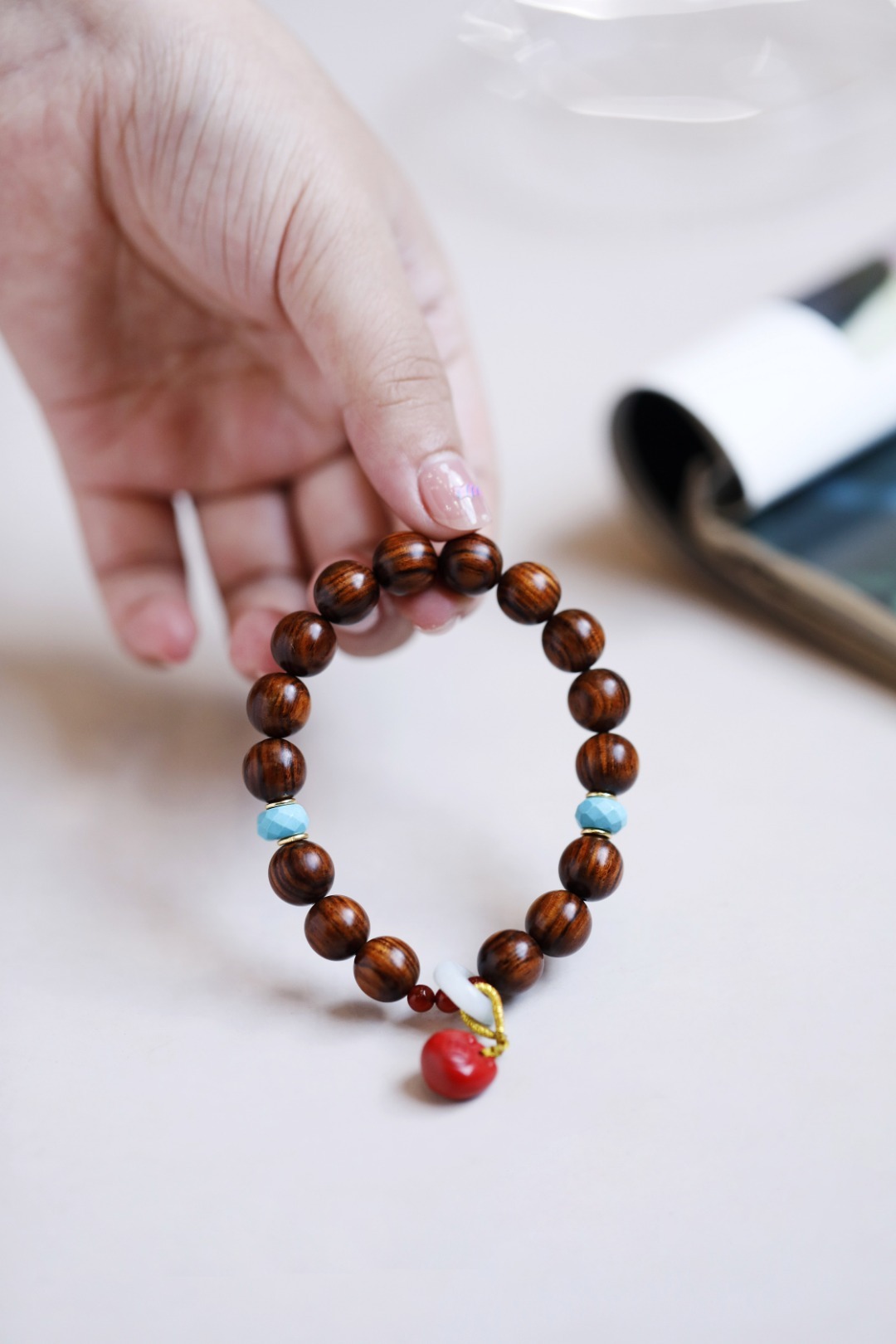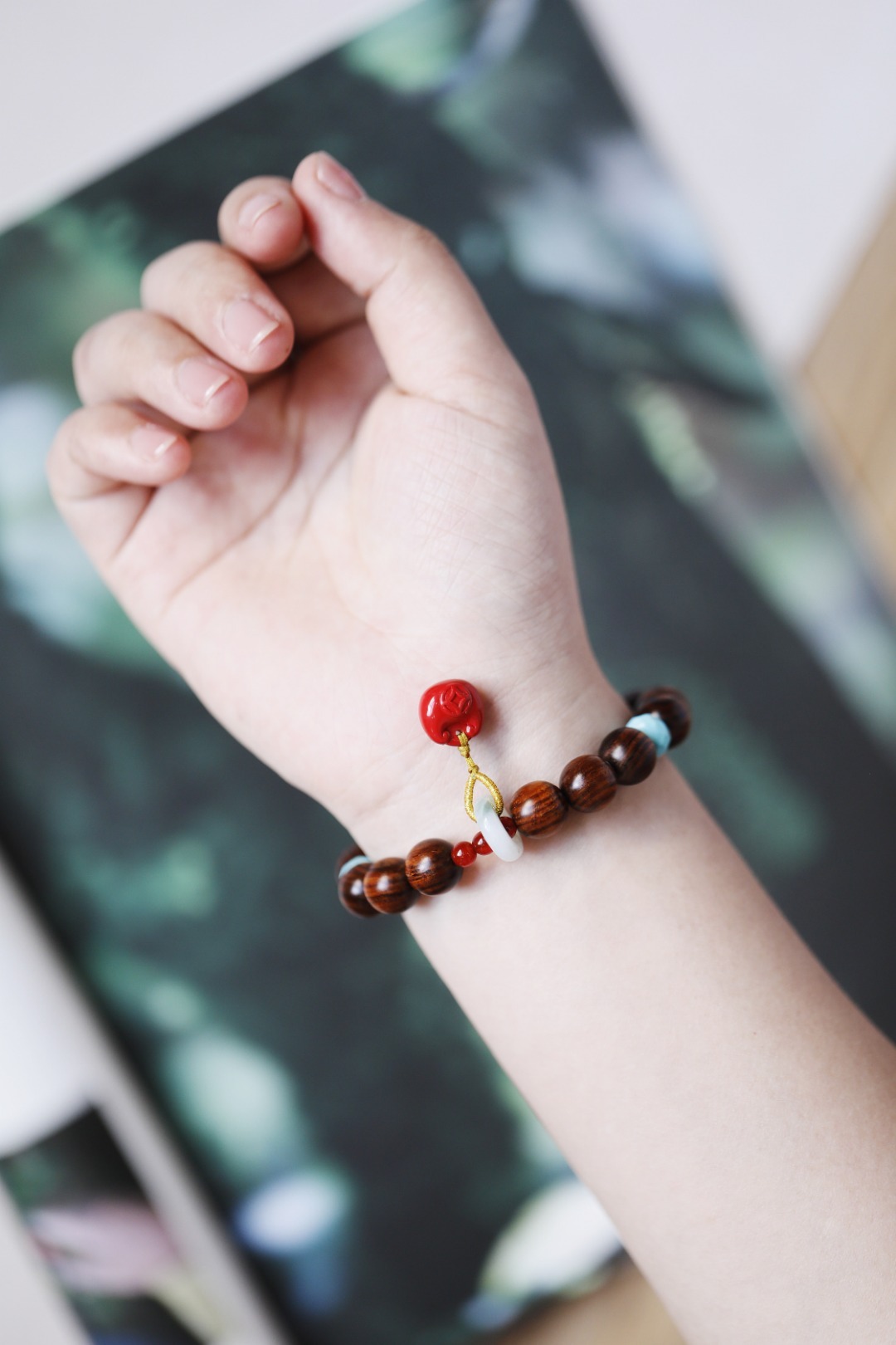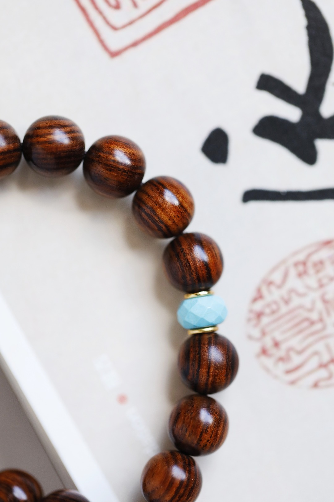 墨线清晰,其降香浓郁,珍宝加以点缀,莹润十足;手持轻捻,端庄有福。