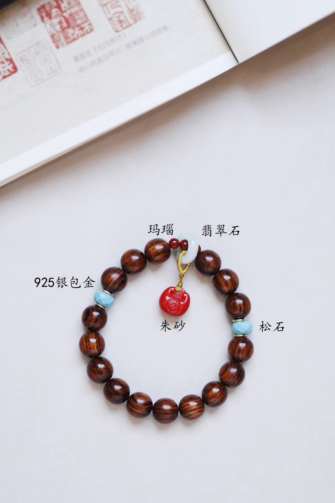 配件:玛瑙、翡翠石、朱砂、松石、925银包金 海黄 原创【行笙】10mm 手串