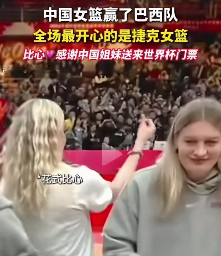 中国女篮83-71击败巴西队,稳稳晋级世界杯。全场最嗨的不是中国队,而是刚惨败比利时、以为要回家的捷克女篮。 随着终场哨响,捷克惊险搭上末班车,姑娘们瞬间沸腾,对着中国女篮疯狂比心、挥手致谢,化身全场最萌“气氛组”。 中国女篮用实力守住公平,收获异国姐妹的真心感谢,这一幕温暖又圈粉。