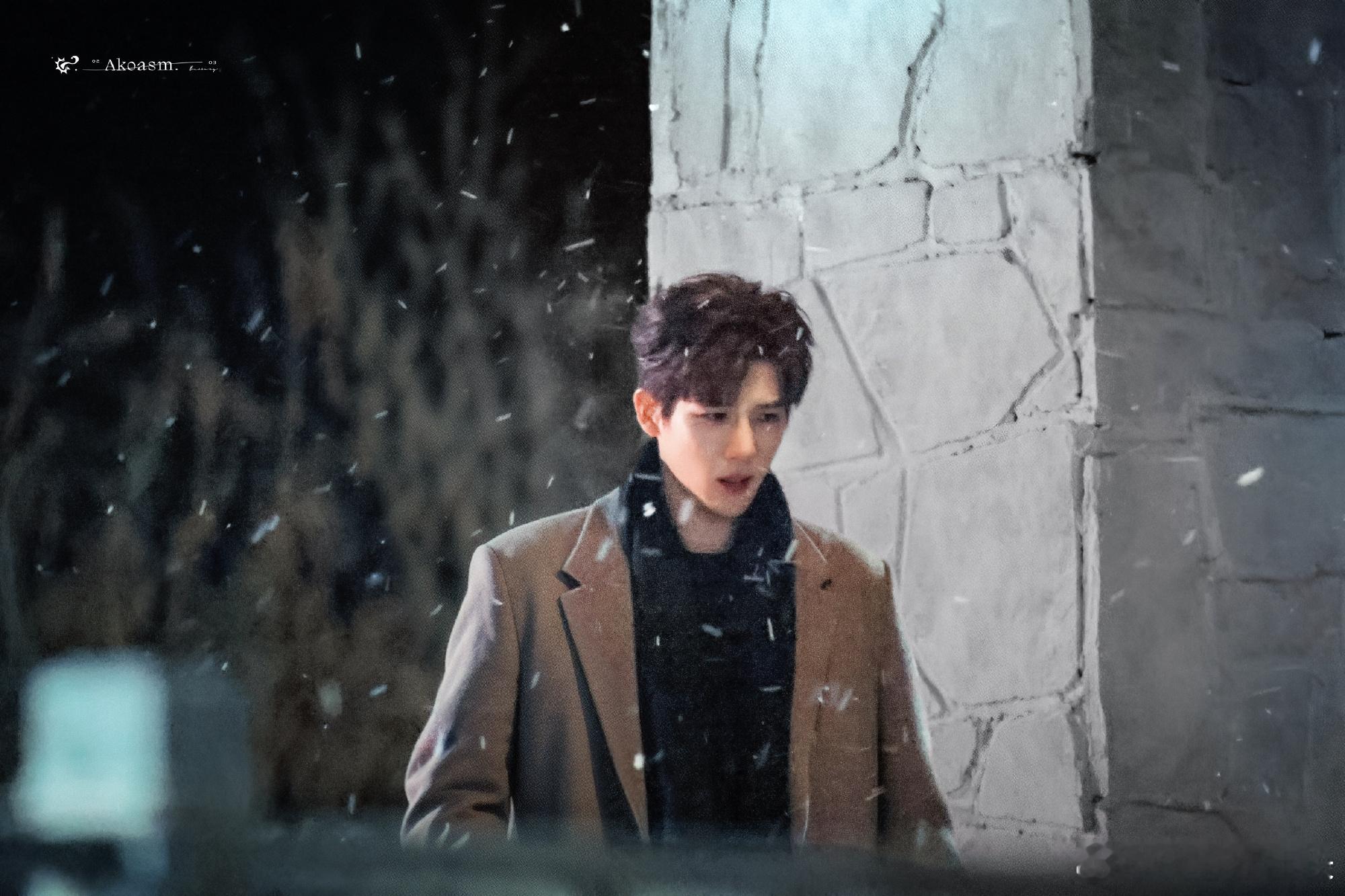 黑大衣衬得眉眼愈发温柔,风雪里的每一个眼神都藏着故事感,完美诠释了“想把你和时间藏起来”的缱绻。王安宇青年演员王安宇