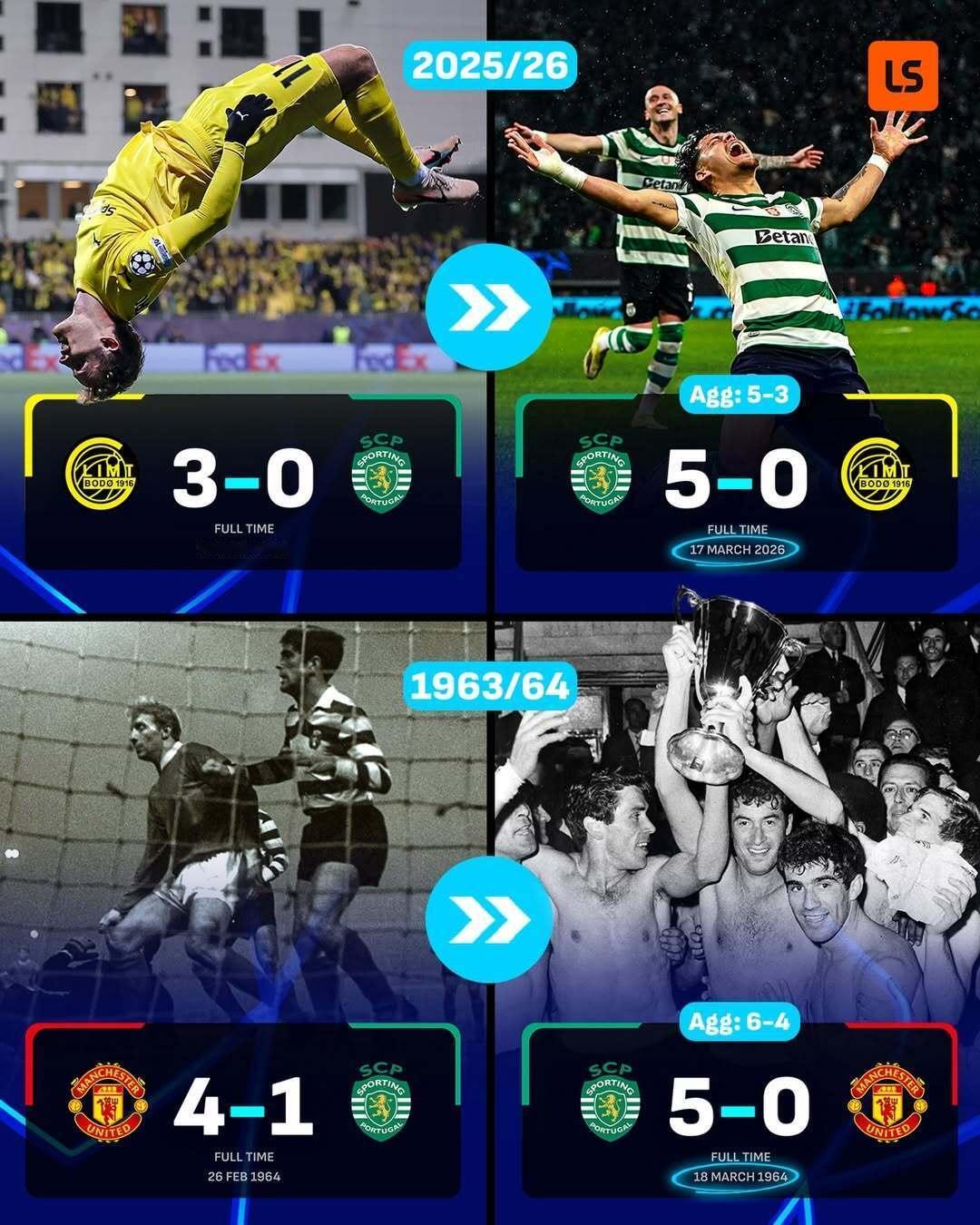 葡萄牙体育在欧冠首回合落后三球的情况下实现逆转,上一次他们实现逆转的对象是62年前的曼联。葡萄牙体育也成为了欧冠历史上第5支落后3球及以上最终逆转晋级的球队,这也是葡萄牙体育队史第二次进入欧冠八强,上一次是在1983年。