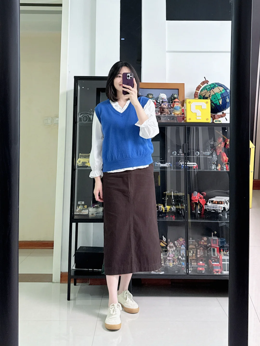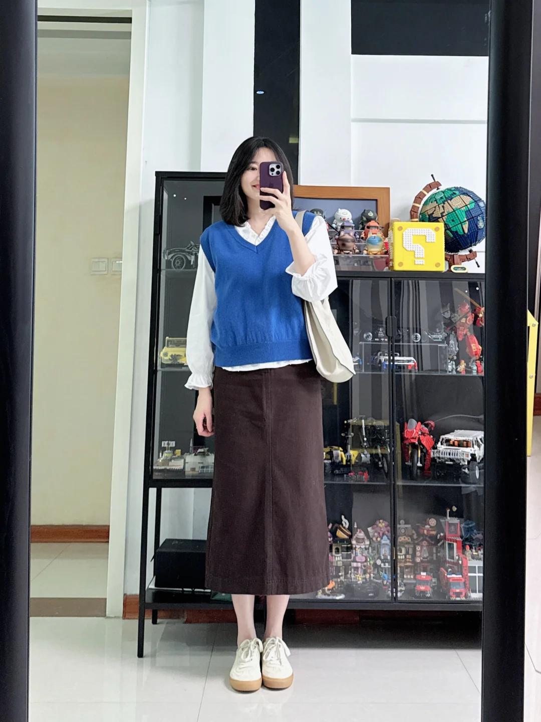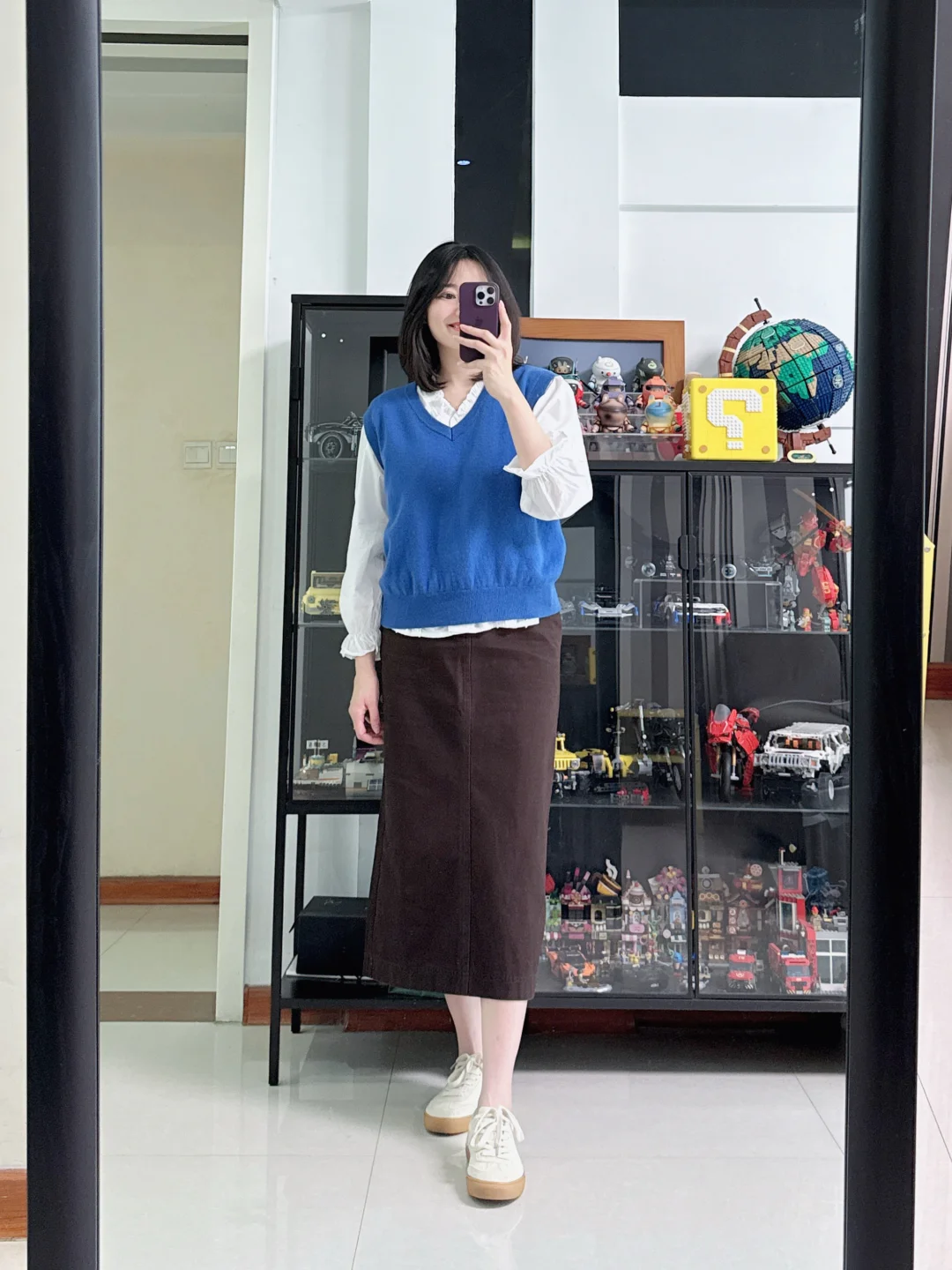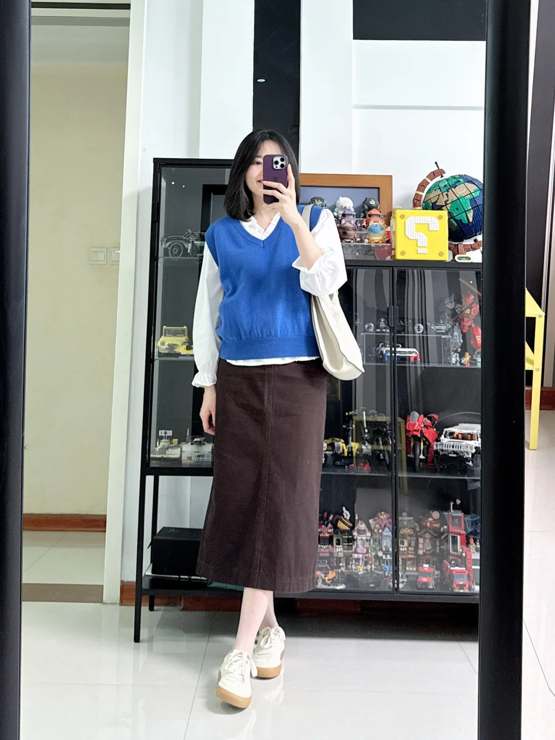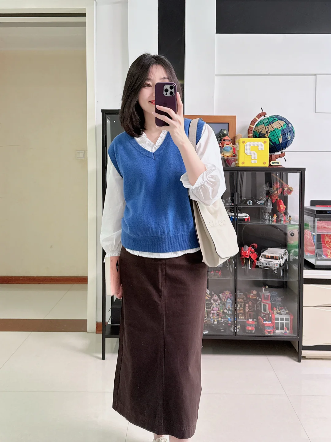 👩今日穿搭:超级好看的蓝色针织背心,搭配白色衬衫,干净清爽,特别显白,春天这样一套,外面搭件风衣外套,太适合日常通勤了。