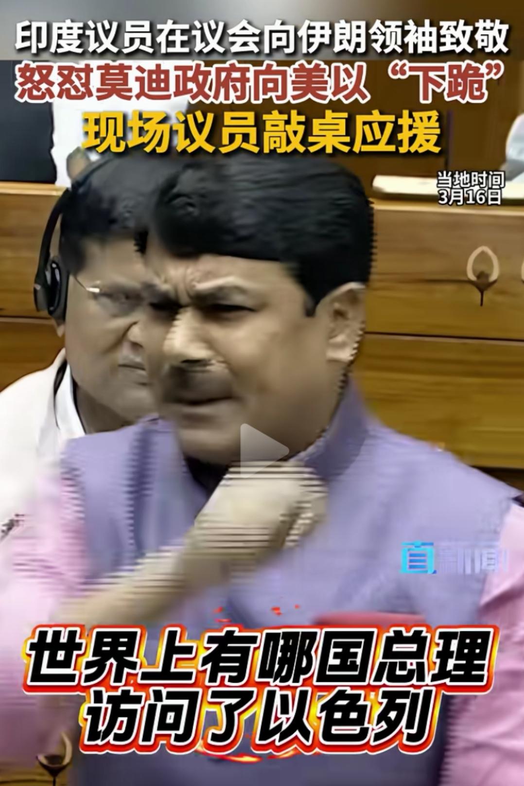 莫迪访问以色列被怒怼! 印度议员在议会上没有给一点面子,质疑问题相当尖瑞! 向伊朗哈梅内伊致敬,他没有像你一样,向美国人卑躬屈膝! 但你却向美国下跪! 印度人民党政府应该做出解释! 巴以冲突之后,哪国总理访问了以色列! 这个人在质问,下面还有议员敲桌子应援的。 莫迪访问以色列,好象精神被控制了,为了利益,可以说是不择手段,竟然弄出来了一个父国母国的论调,而从议员的质疑中,也看到了印度还是有明事理的,有维护本国尊严的,莫迪被质疑的问题,他自己恐怕也不能自圆其说!莫迪访以色列