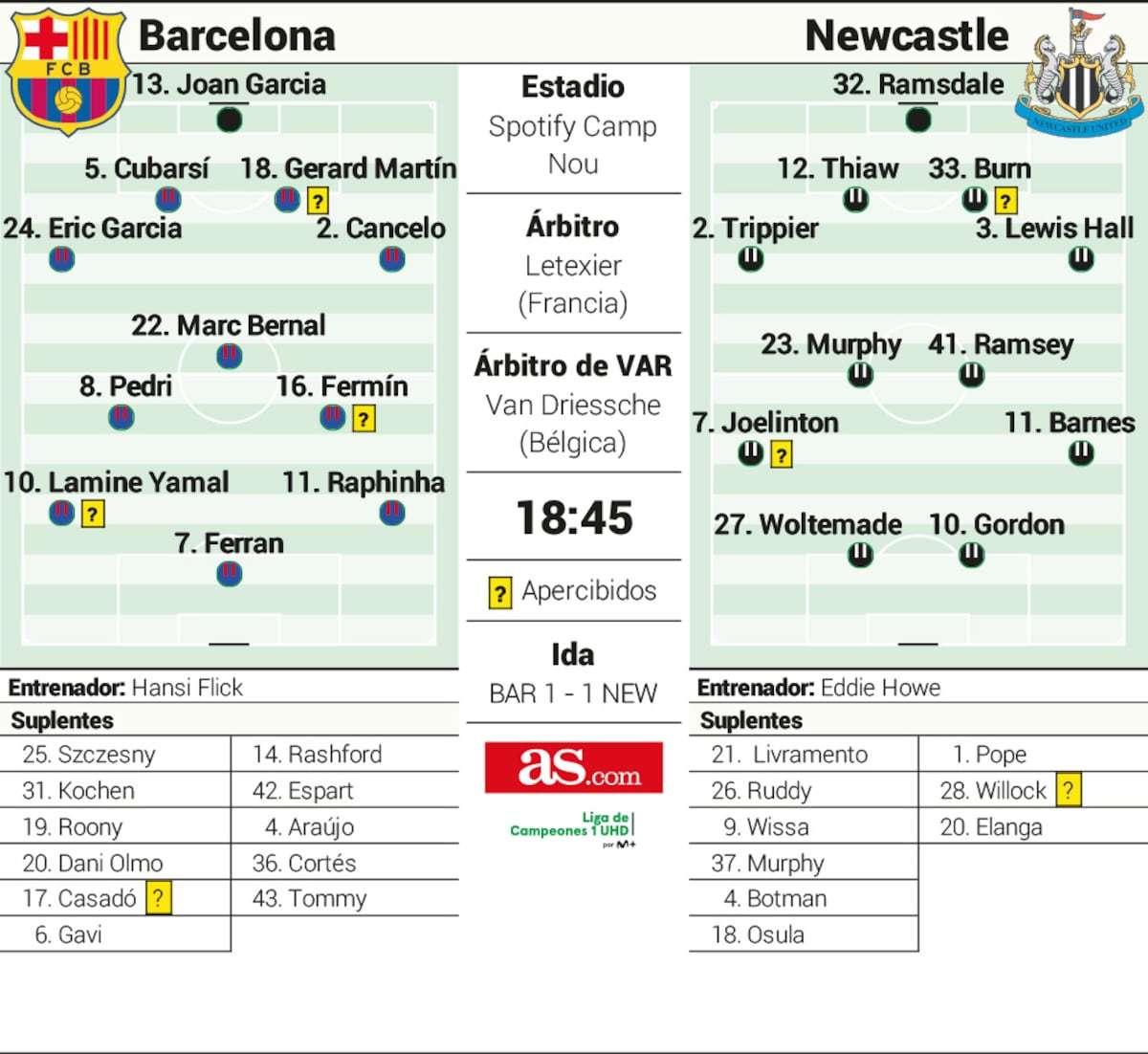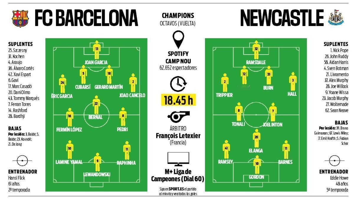 媒体预测巴萨vs纽卡斯尔联首发阵容🔥🔥🔥🔥🔥🔥🔥🔥巴萨vs纽卡斯