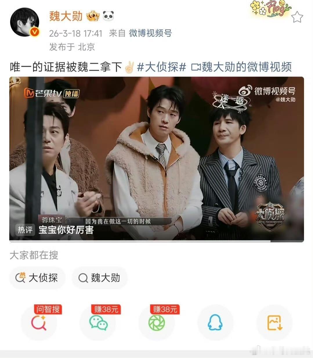 大侦探唯一的证据被魏大勋拿下大侦探 魏大勋这波太绝了!精准抓住关键证据,推理能力拉满,冷静沉稳carry全场,实力证明脑力天花板!