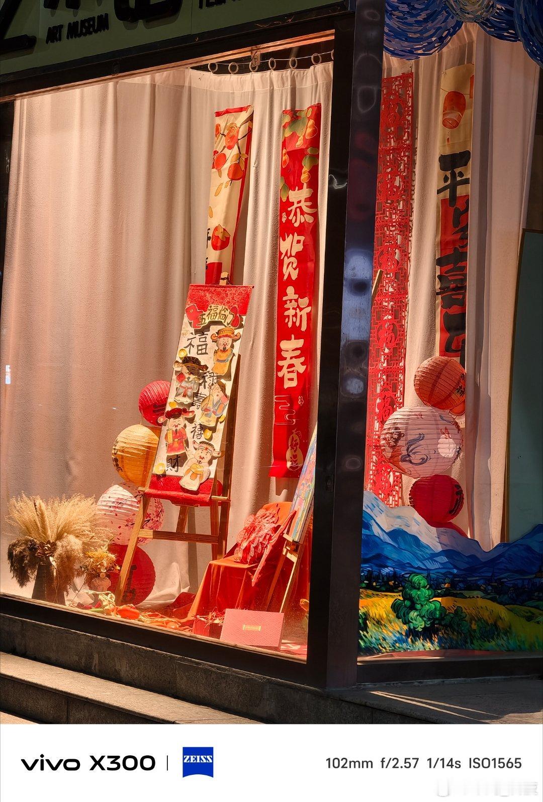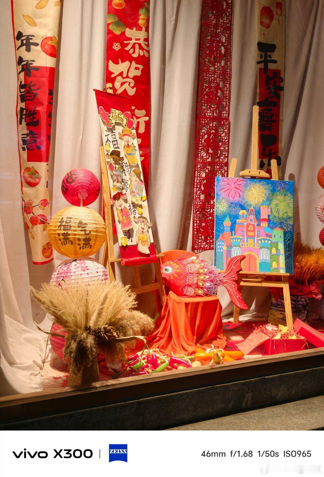 vivo春暖花开各地文旅持续升温 橱窗里的年味藏在每一处细节里✨金黄麦穗裹着丰收的暖意,彩色城堡画满童话与烟火,红灯笼、红对联、五福临门的卷轴,把新春的热闹与期许都装了进来。暖光漫过每一件小物,像把一整年的温柔与好运,都妥帖地封存在这一方小天地里,等着路过的人,接住这份满溢的喜庆。手机随手拍夜景