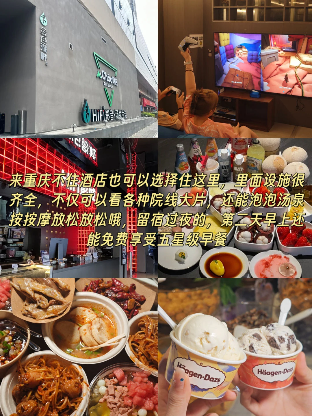 👍金色湖畔·温泉潮玩生活馆:来重庆不住酒店也可以选择住这里,里面设施很齐全,不仅可以看各种院线大片,还能泡泡汤泉、按按摩放松放松哦,留宿过夜的,第二天早上还能免费享受五星级早餐
