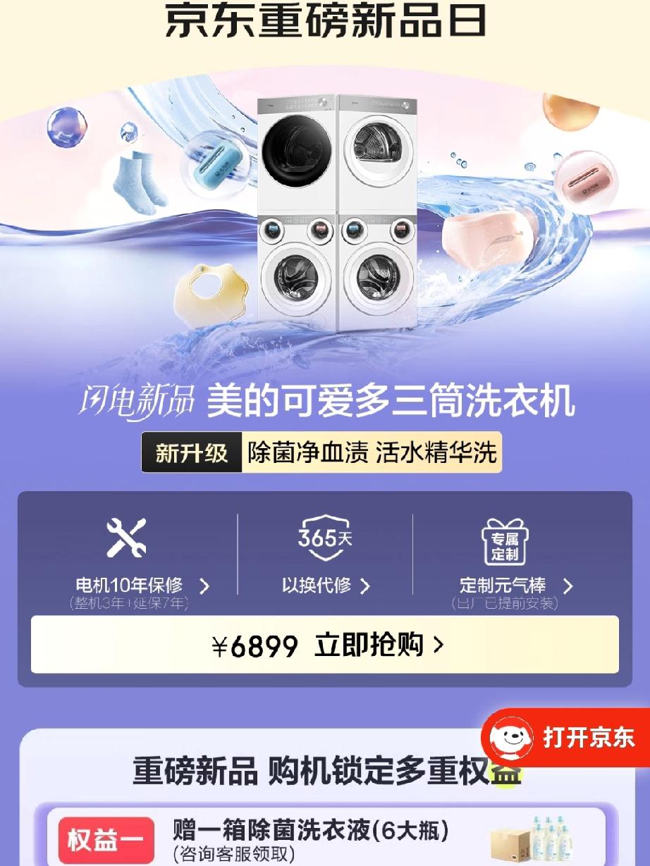 回南天的“蓬松救赎” 三月的墙,是哭湿的纸。 被子像泡过水的海绵,压得人喘不过气——晾了三天的衬衫仍能拧出潮气,衣柜里的羊毛衫长出了灰绿色的霉斑。直到那台美的热泵烘干机进驻阳台,生活才终于有了“干爽”的形状。 美的可爱多像个沉默的魔法师:把潮得发沉的羽绒被塞进去,选“热泵柔烘”模式,45℃的风裹着纤维轻轻翻涌。两小时后拉开门,被子“嘭”地弹出来,像刚晒过太阳的云朵,蓬松得能埋进脸。凑近闻,是阳光晒过的暖香,没有半点霉味。 最惊喜的是回南天的清晨:前一晚洗的睡衣,烘干后带着淡淡的薰衣草香;孩子的毛绒玩具,烘完后软乎乎的,再也不怕滋生螨虫。原来“干爽”不是奢侈品,是按下启动键就能拥有的小确幸——就像咬一口可爱多冰淇淋,甜意从舌尖漫到心底。烘干机前,用户抱着蓬松的被子笑,背景是窗外湿漉漉的街道,对比鲜明。