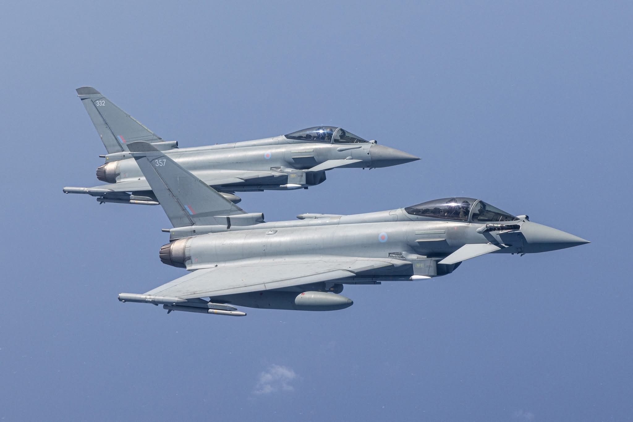 今日台风 午安,英国皇家空军(RAF)将派台风赴罗马尼亚开展“黑海空中警巡”从黑海到地中海再到波斯湾,从东欧到近东再到中东,英国空军很忙。这几张图拍得不错,尤其空对空摄影那张。Photo credit: RAF