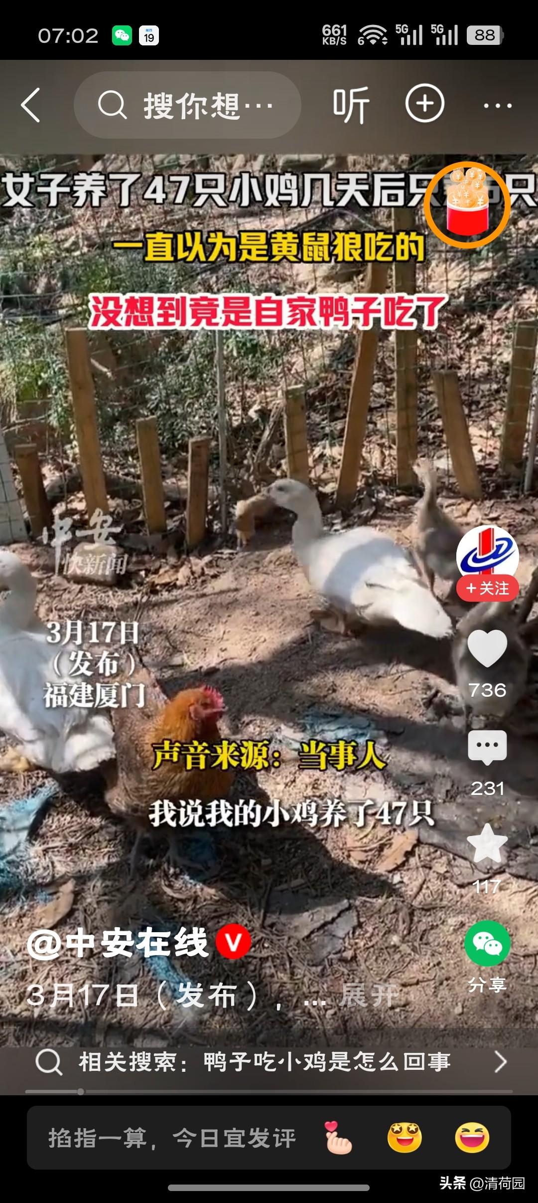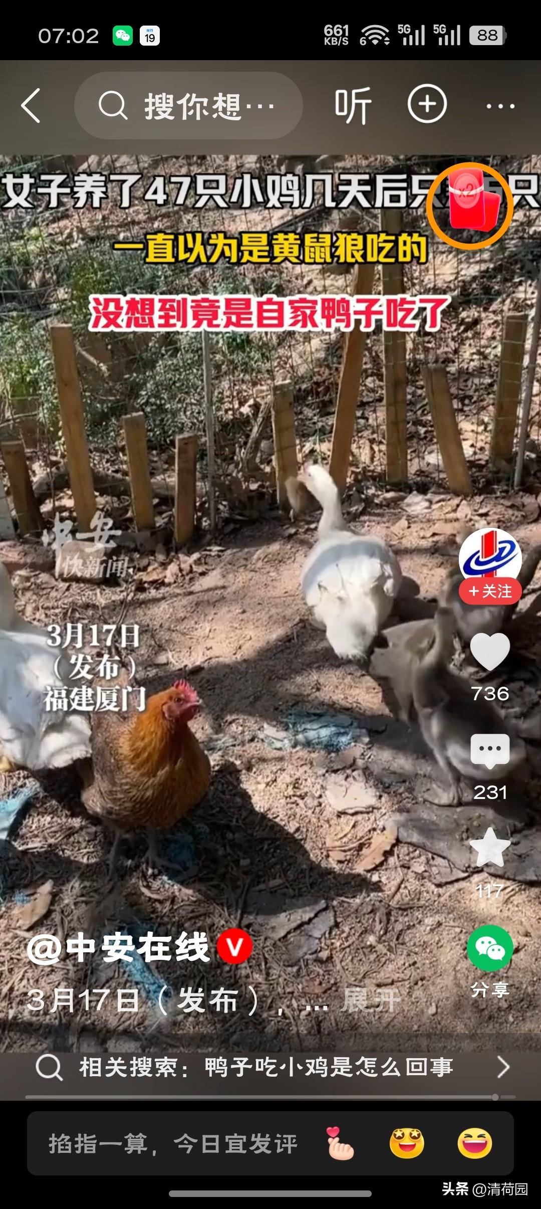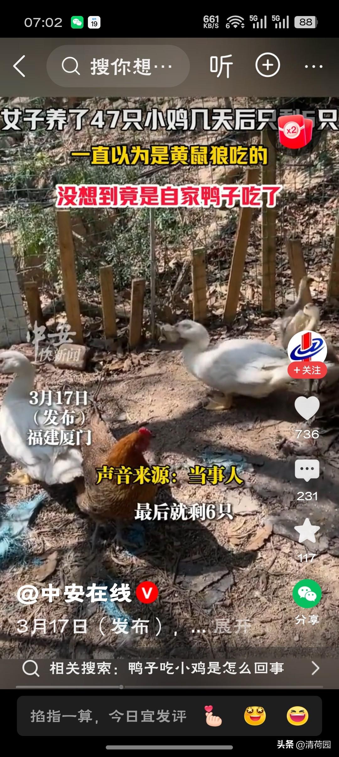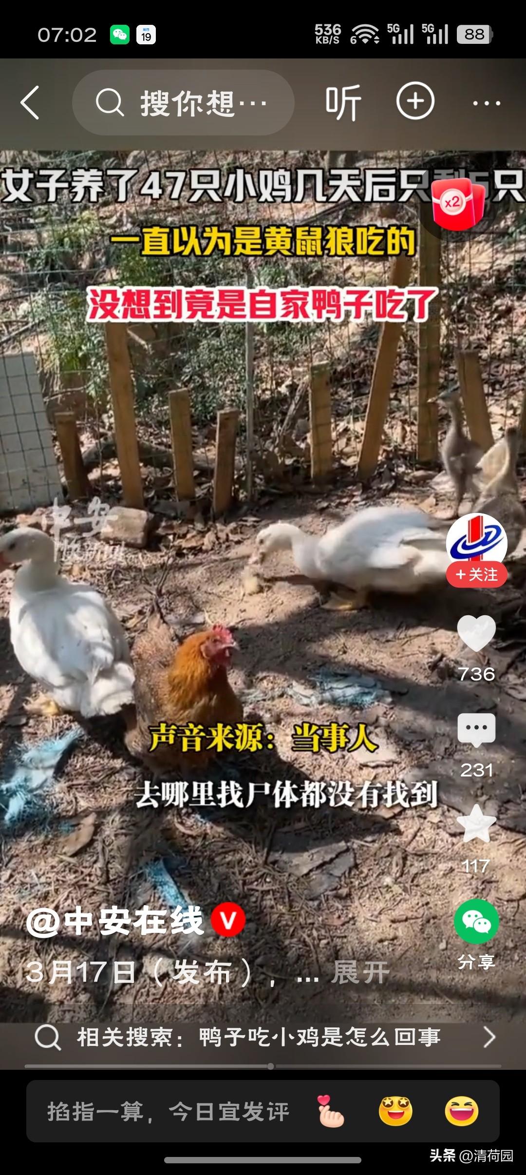 41只小鸡“离奇失踪”,真凶竟是自家鸭子——建议给它颁发“年度最佳伪装奖”:表面呆萌无害,实则“吃鸡高手”。