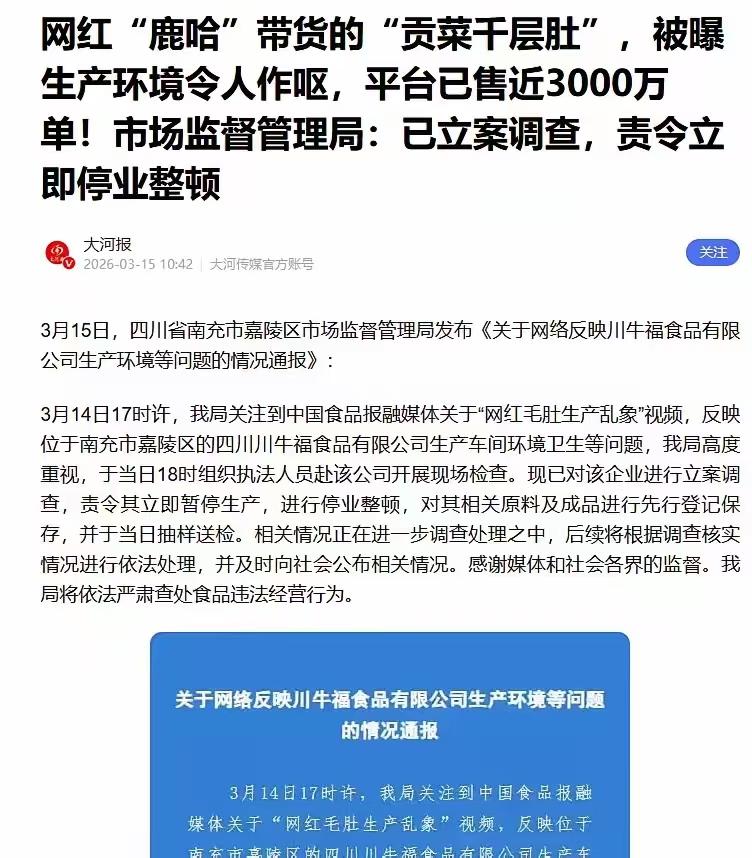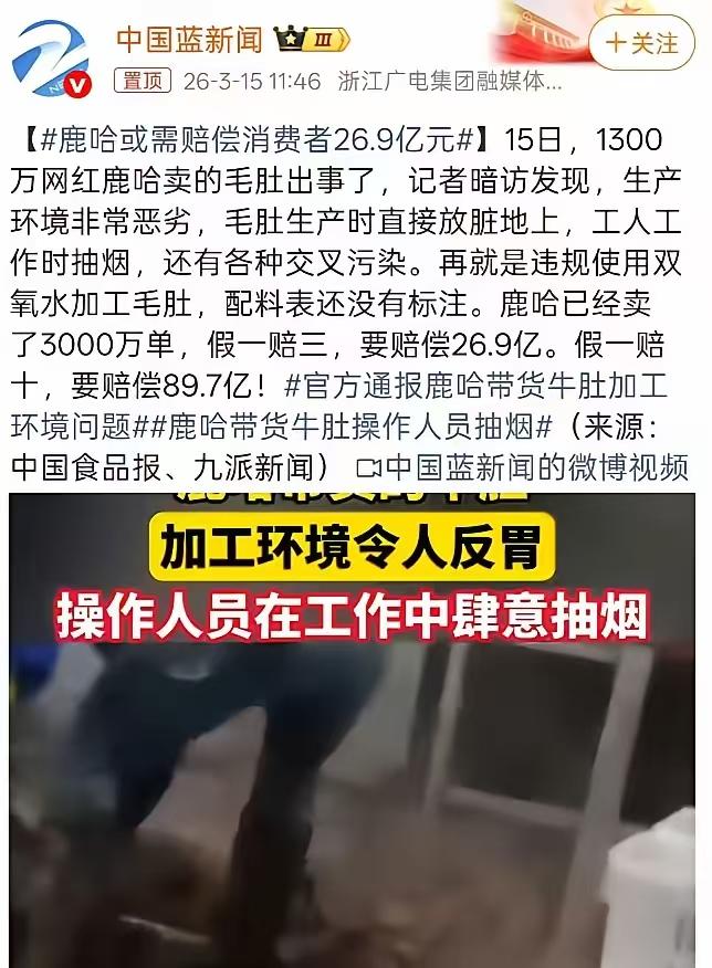 鹿哈估计要坐牢,这比小杨哥严重多了。他坐牢也不为过,卖假货赚那么多钱,不管是不是知情方,应该坐牢。 坐牢是不会的,而且赔钱是厂家赔,鹿哈只是拿提成,就看他和厂家怎么沟通这个事了,谈不好那他只有打官司了。 他媳妇才刚生完孩子,这时候只能离婚分割了,保一个。 现在真真做到假一赔十只有李维刚,他也是被当地忽悠的,很无奈但他赔了。 应该学学国外,出现食品问题就罚到倾家荡产,我相信食品安全一定会改善很多,现在处罚力度太小了。 到时候肯定又是甩给食品公司,又说自己不知情。3000万单,就是平均20个人就有一个人买了,但是好像我从来没刷到过他。 杀一儆百,才能让直播带货认真负责!还赔款该坐牢。 为什么工业添加剂国内泛滥,甚至个人小作坊都能买到,主播确实有责任,那更大的责任方监管部门 和厂家呢。 雪崩的时候,没有一片雪花是无辜的,不知道都是些什么人在直播间购物。 人家说的是假一赔十,这玩意只是品质不过关,又不是东西是假的!