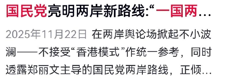 国民党摊牌:“一国两区”不是务实,是换汤不换药的政治算计! 国民党终于把底线说透:认“九二共识”,拒“一国两制”,一心要“一国两区”,追求台湾与大陆“平起平坐”。 这套说辞看似四平八稳,实则暗藏私心:承认同属一中,却谋求与中央对等地位,互不隶属、各自为政,本质就是拖延统一、维持分裂现状。 “一国两制”是中央为台湾量身定制的最大善意,保障台湾同胞切身利益;而“一国两区”,是要把台湾抬到与中央分庭抗礼的位置,完全违背一个中国原则与国家主权逻辑。 国民党如今左右逢源:对内硬气保选票,对外留路保利益,玩得一手政治太极。但大陆看得透彻:统一大势不可挡,主权底线绝不让。 和平大门始终敞开,但绝不是“两个对等政治实体”谈条件。任何想以拖待变、以空换利的把戏,终究走不通! 对此,你怎么看? 台海局势 九二共识 一国两制 台湾问题