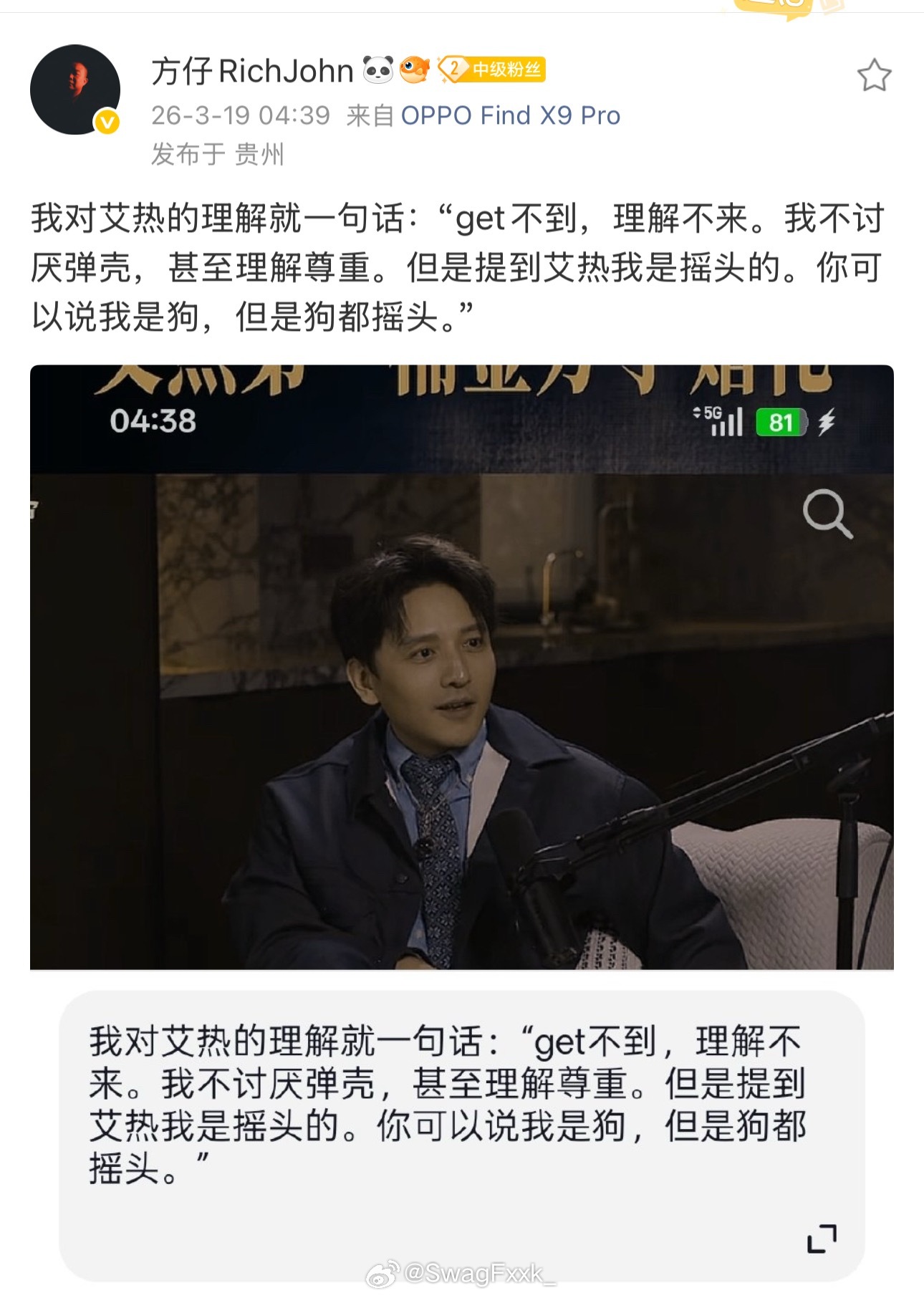 方仔再度回忆往事!提到GAI弹壳,并开怼艾热:提到艾热我是摇头的。你可以说我是狗