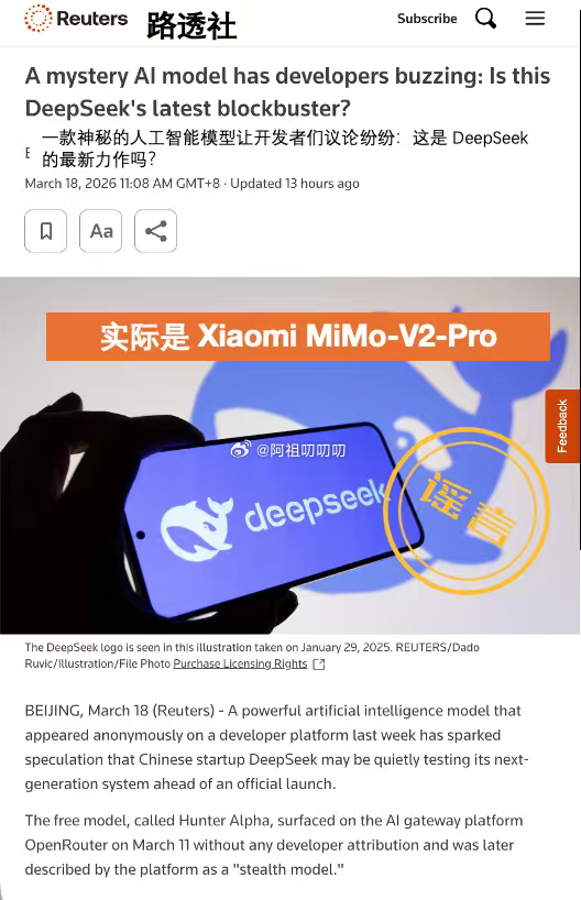 能力比肩 GPT-5/Claude Opus,身份是最大彩蛋,匿名裸考拿全球第一。正如前几天的预告,小米用 Hunter 匿名,就是把大模型扔进 “野生市场” 裸考:考好了再亮身份,用真实战绩证明自己进入全球第一梯队。