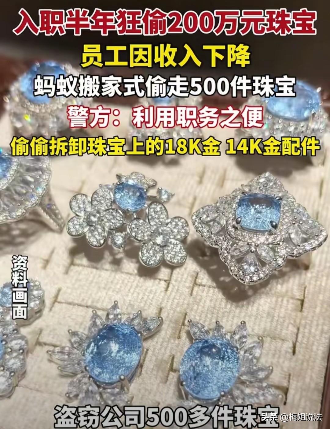 真是贪大发了!浙江,一女子胆大包天,仅仅入职半年,竟敢神不知鬼不觉的,在老板眼皮子底下顺走了价值200万元的珠宝! 今年年初,某家珠宝企业的负责人周某向民警报了个案子。 他神色着急地说,他的珠宝店遭了贼,最近总感觉店里的珠宝莫名其妙少了些。 刚开始还以为是自己的错觉,可后来等他有时间清点了一遍后,瞬间感觉天都塌了,他店里竟少了足足价值200万元的珠宝! 他不相信这是有贼晚上潜入他的店内,将珠宝悄咪咪偷了去。 毕竟,他店里的门都是高级防盗的,窗户也都是锁紧的,最主要的是,他没有发现有入室盗窃的痕迹。 可这么多的珠宝不可能就这样无缘无故地消失了。何况里面还有价值较高的巴洛克、澳白以及大溪地裸珠等珠宝,更是比较容易遭人惦记。 只是,这些珠宝到底是谁偷的,他真的是毫无头绪。 民警听到报案后,很快就赶到了现场进行调查,通过排查,大概率判定是熟人作案。 通过询问相关的工作人员,民警找到了个突破口:一般普通的珠宝会放在仓库里,而价值比较高的裸珠则锁进了办公室的保险柜里,用的时候从那取,用完再归还。 而且,仓管员对于一般珠宝的登记比较随意,往往会出现记录与实际情况对不上的情况。 再一个就是,用完裸珠后,遇到无法及时归还的时候,仓管员会非常热心地提出先交给她保管,等她到时候再放回保险柜里。 于是,仓管员姚某便成为了民警们的考察对象。 并且非常可以可疑的是,民警还发现姚某之前欠了不少债务。可就在她来到珠宝企业工作后,她欠下的债务就很轻易地还清了,之后她的卡里还多出了不少钱,就像是突然间发了笔横财一样。 可是一联想到周某的珠宝链接被盗的事,这任谁看了都很难不怀疑到她头上吧? 于是,民警便找了姚某问话。一开始,姚某怎么都不肯承认这事,可随着问话的深入,姚某渐渐招架不住,露出了破绽。 在严厉的逼供下,她终于对自己的罪行供认不讳,表明自己从去年8月开始,她就开始在暗中做这种勾当。 那时,主要是因为她欠下了不少债务,而且每天接触的都是这些亮闪闪的珠宝,实在是难以抵抗诱惑。 于是,她背着老板和其他的工作人员,趁大家不注意的时候,偷偷拆下珠宝上的18K金配件,然后装在了自己的口袋里,偷偷带回了家。 刚开始,她还是比较收敛的,怕被别人发现,只敢顺走一些不起眼的小物件。 可随着后来次数的变多,她胆子慢慢大起来了,甚至开始有些得意忘形,拿老板当傻子,竟敢直接将同事交给她的裸珠偷走。 于是,她凭借自己的努力,陆陆续续共偷走了500多件珠宝,价值共计200万元了。 姚某这种利用职务之便,窃取价值200万元珠宝的行为,法律会怎么判呢? 根据《刑法》第271条的职务侵占罪:若是公司、企业或其他单位人员,利用职务便利将本单位的财物非法占为己有,数额较大的,处三年以下有期徒刑或者拘役,并处罚金;数额巨大的,将处有期徒刑三年以上十年以下,并处罚金;若是数额特别巨大的,处十年以上有期徒刑或者无期徒刑,同样处以罚金。 而姚某直接窃取了200万元,属于数额特别巨大的这种。 目前,她已被依法采取了刑事强制措施,案件还在侦办当中。 但不管最终结果如何,相信她将要面临的,必是法律的严惩。 其实通过这件案子,我们要明白,不论是在哪种情况下,我们都不能因一时贪念做出违法的事情。看到有网友评论,姚某是因为太贪,导致得意忘形了,才会被发现。 但其实不是这样的,只要是因为贪欲做了一次这样的事,并从中尝到了甜头,那么就会觉得找到了捷径,一直想通过这种事来获利,导致渐渐迷失自己,最终也会做出越来越多无法挽回的事情。 所以,最好的方法就是,不管什么时候,都得保持本心,守住自己的道德底线,别做出任何一件对不起自己内心或是违法的事情。