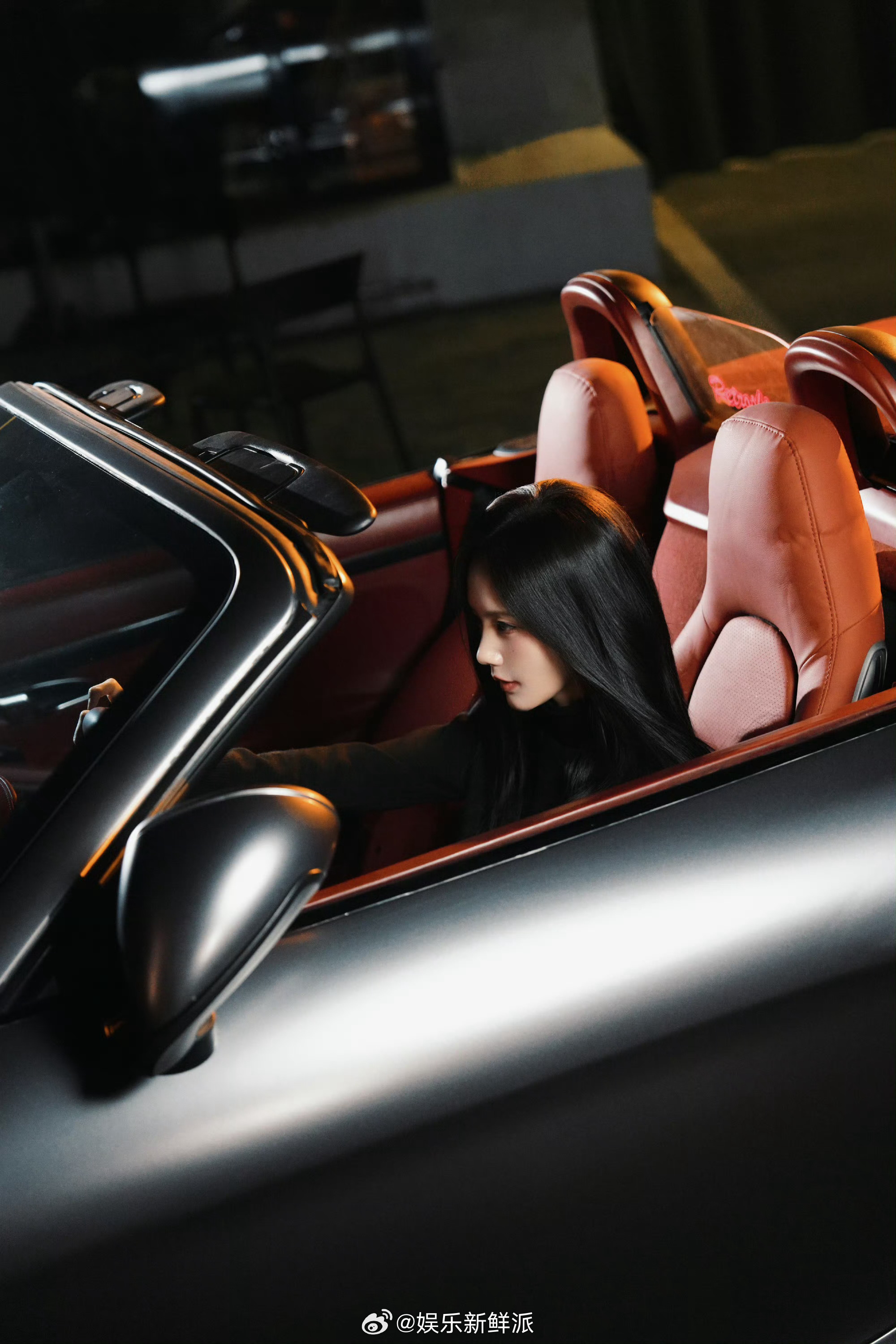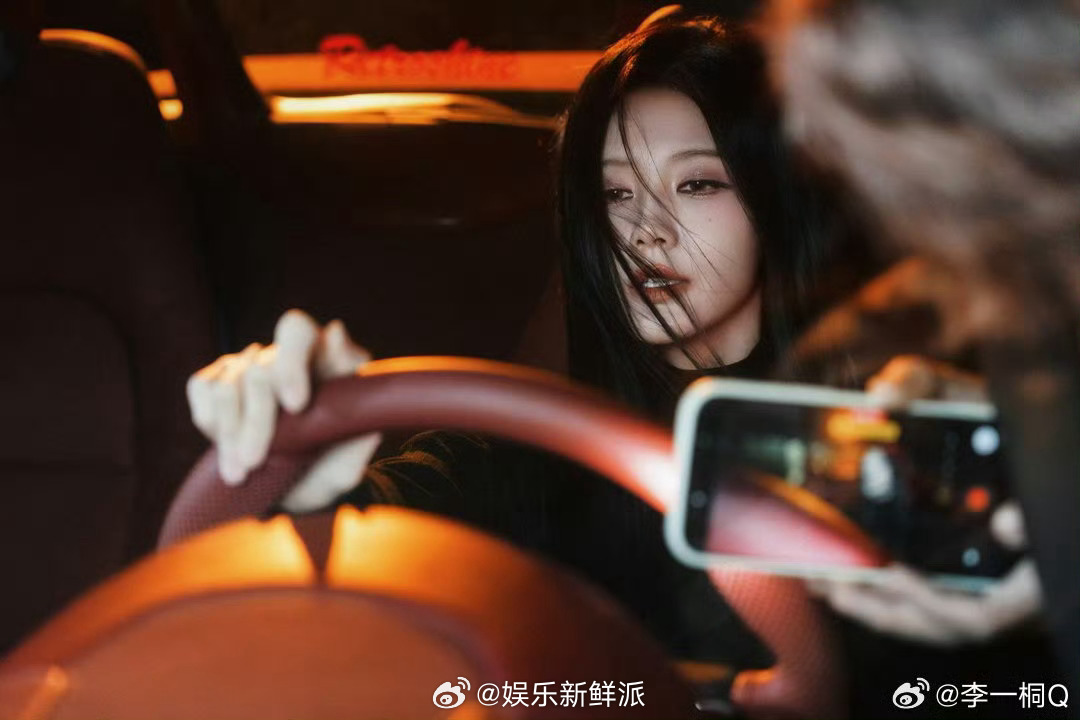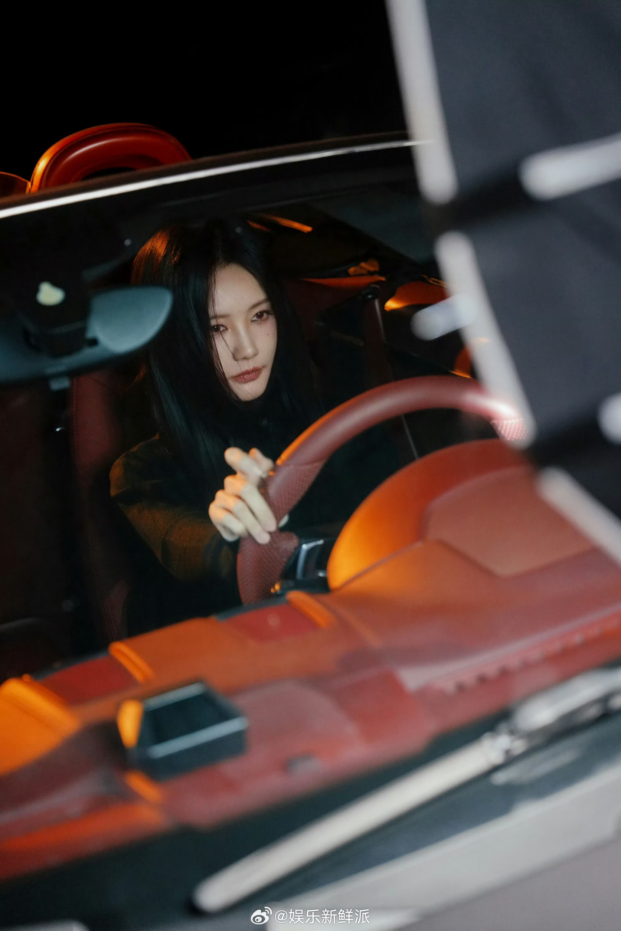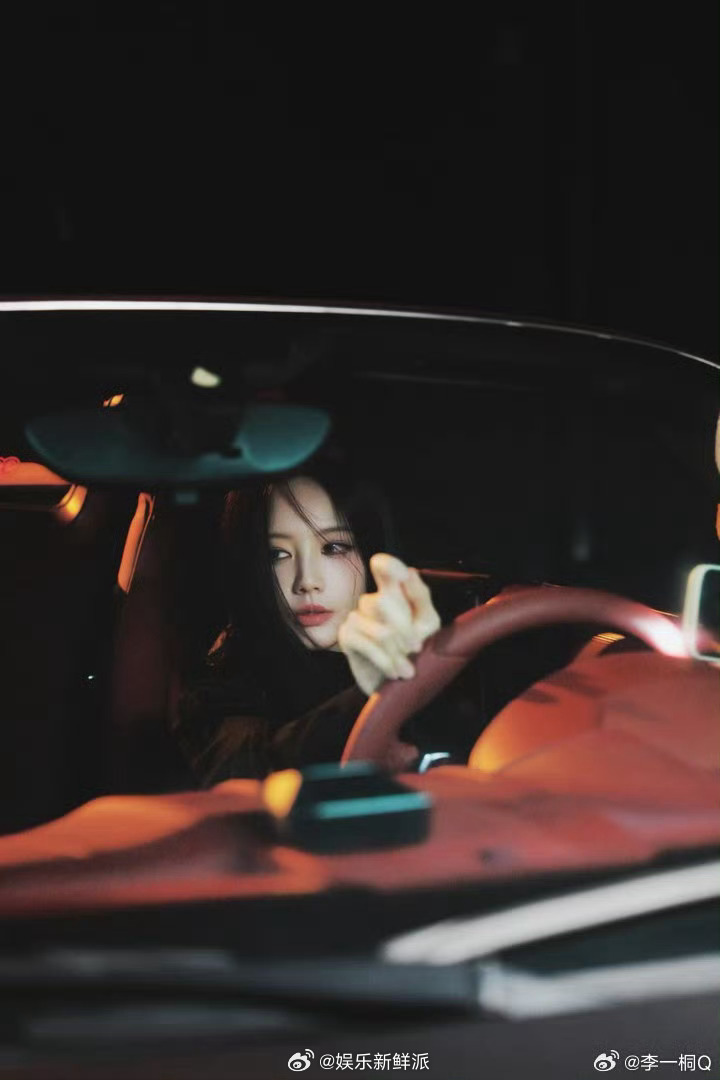派酱安利 坐上李一桐的副驾 真的被这组照片钓到了!黑长直➕冷白脸,夜色里的跑车与