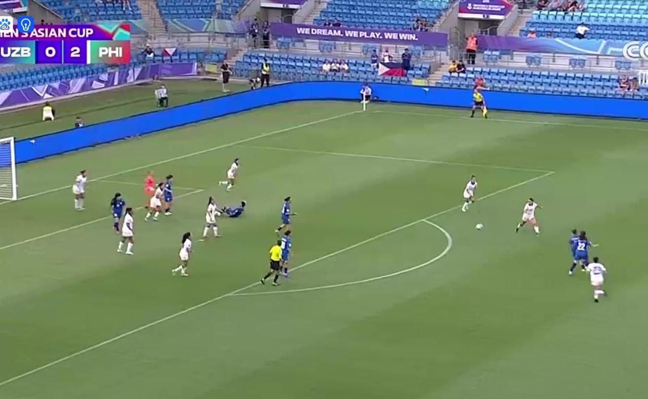 女足世界杯预选赛附加赛菲律宾队2-0战胜乌兹别克斯坦队拿到世界杯入场券 北京时间3月19亿11时,女足世界杯预选赛附加赛,菲律宾队迎战乌兹别克斯坦队,上半场菲律宾队得势不得分,双方0-0握手言和。下半场第46分钟和52分钟菲律宾连续破门,取得2-0的领先。最终菲律宾拿到女足世界杯的参赛资格。 主裁判一声哨响,上半场比赛开始了,场上穿着蓝色球衣的是乌兹别克斯坦女足,穿着白色球衣的是菲律宾女足。乌兹别克斯坦女足从左往右攻。第12分钟菲律宾8号球员的射门擦着立柱出了底线。第21分钟菲律宾队的射门被门将没收。第24分钟乌兹别克斯坦队的远射打偏了。第26分钟乌兹别克斯坦队的射门被门将没收。第27分钟乌兹别克斯坦队的远射打高了。第28分钟菲律宾队的射门打高了。第37分钟乌兹别克斯坦队的门将开球被菲律宾球员逼抢,差一点破门。第38分钟菲律宾队非常有威胁的射门被门将没收。第40分钟菲律宾队禁区内的射门打在防守球员身上,错失破门良机。上半场比赛结束,双方0-0握手言和。 下半场易边再战,第46分钟菲律宾7号送上助攻,跟进的队友凌空抽射破门,菲律宾女足1-0领先。第49分钟乌兹别克斯坦队获得角球,没有形成射门。第50分钟菲律宾抢断成功射门被门将没收。第52分钟菲律宾7号盖伊再次送上助攻,6号头球建功,菲律宾女足2-0领先。第64分钟菲律宾队的射门被门将挡出。第71分钟乌兹别克斯坦队的远射打高了。第73分钟菲律宾队获得前场任意球,射门被门将没收。第75分钟乌兹别克斯坦队非常有威胁的射门被门将挡出,角球传到禁区被门将挡出,跟进的射门打偏了。第79分钟菲律宾队的远射打偏了。此后双方都有进攻,但是都没有取得进球。全场比赛结束,菲律宾女足2-0战胜乌兹别克斯坦女足,拿到女足世界杯的参赛资格。 女亚洲杯 女足世亚洲杯