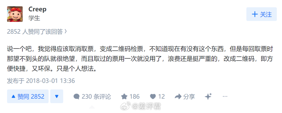 还有一条我觉得也特别有代表性,“给不知道的东西拍照,就能显示出名字” —— 好家伙,这不就是今天各种AI识图功能的祖师爷版需求?还有一条“我觉得应该取消取票,变成二维码检票。”哥们梦想成真了。