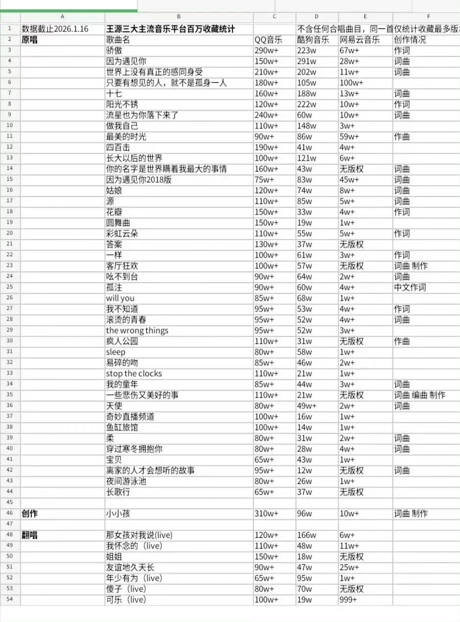 原创歌手王源太厉害了!全平台破百万收藏50首 期待音乐节~王源百万收藏歌单王源全