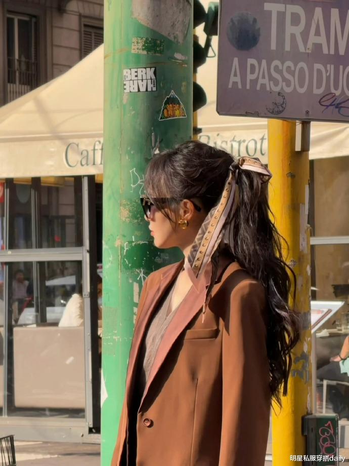 提及娱乐圈中兼具高颜值与好气质的女星,唐嫣绝对是绕不开的存在。172cm 的高挑身材让她如同行走的衣架子,无论何种风格的服饰,穿在她身上都能展现出独特的魅力,而她多年来塑造的经典角色更是深入人心,颜值与实力的双重加持,让她始终在时尚与演艺领域保持着高关注度。最近,出现在在米兰街头被拍时身穿Fendi咖色廓形西装套装,搭配高马尾和发带,主打秋日“美拉德”色调的松弛感。