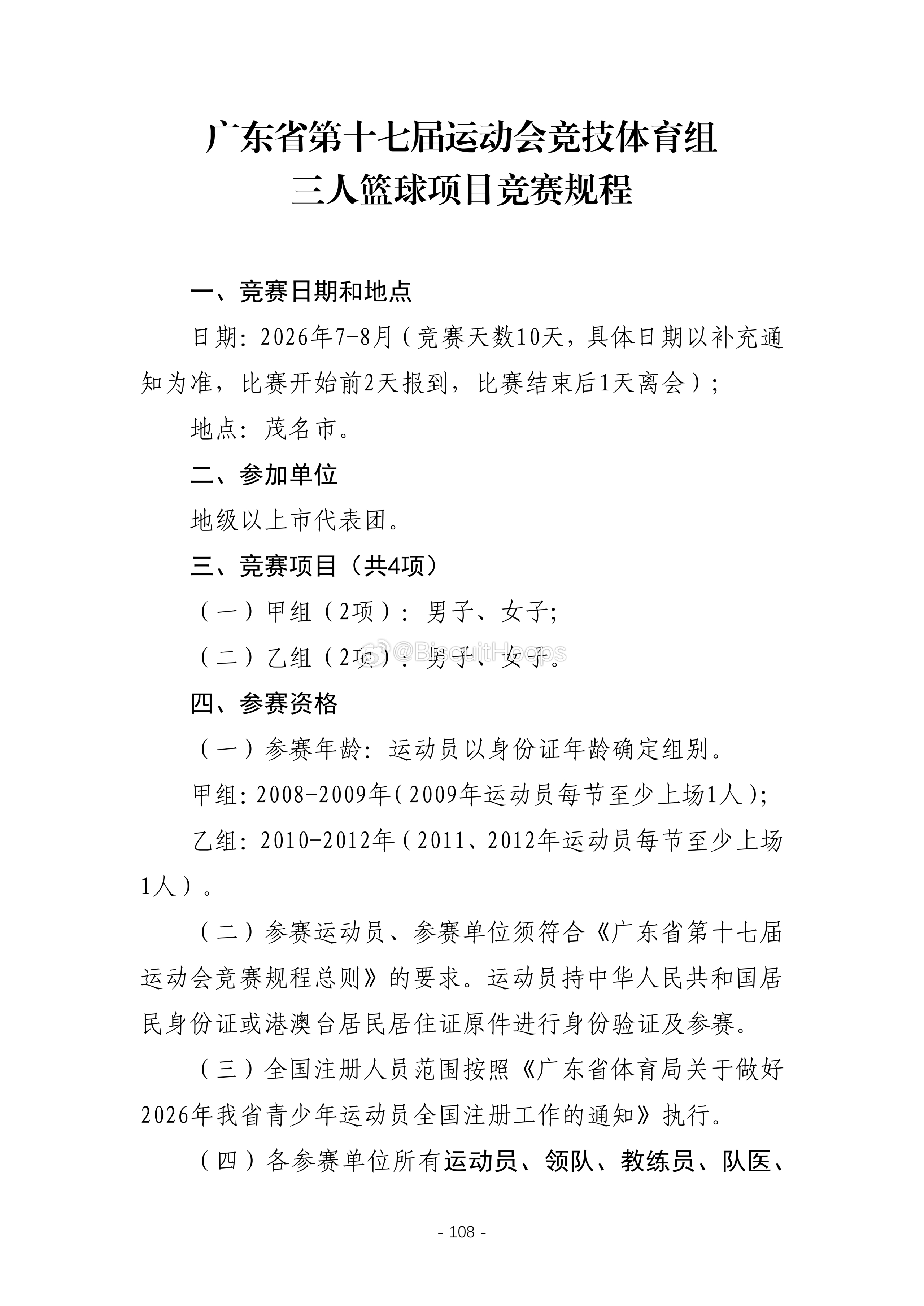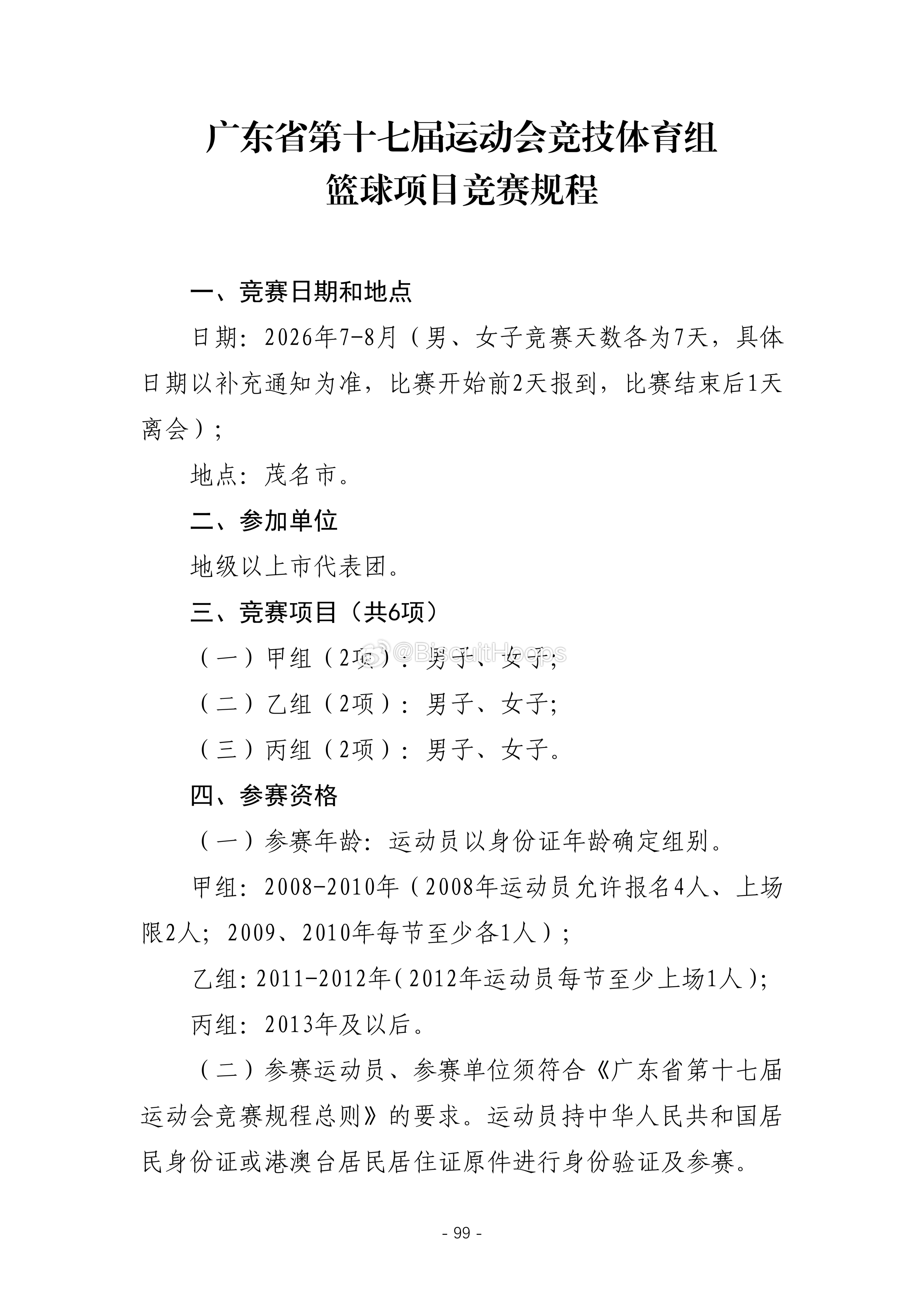 广东省第十七届运动会竞技体育组篮球项目竞赛规程⬇️