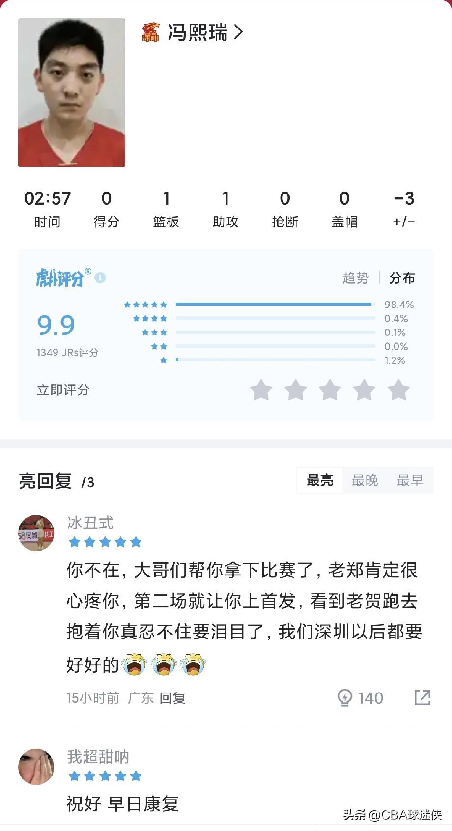 18岁小将脚踝90度扭曲,队长贺希宁抹完眼泪砍下20+12:这胜利,是带着他一起赢的 “我们最不想看到,我们的球员因伤病倒下。” 3月18日,天津东丽体育中心,18岁的冯熙瑞第一次首发出战。开局不到3分钟,一次拼抢篮板落地——脚踝90度扭曲,整个人重重摔在地上,被担架抬离球场。 ① 一个队长,两个瞬间 全场安静。贺希宁第一个冲过去,蹲在担架边,一直陪到队友被送出场。 然后他转过身,抹了一把眼角,看了一眼计分板。 ② 20+12,带着兄弟那份一起拼 全场比赛,贺希宁15投8中,20分12篮板,两双。篮板全队最高,得分仅次于外援史密斯。赛后数据栏里写的是两双,但所有人都知道,这20分里,有10分是替冯熙瑞拿的。 郑永刚赛后说起冯熙瑞,眼眶红了:“这是一位非常有潜力的年轻队员,受伤确实很揪心,希望他能平安无事。” ③ 这个赛季的贺希宁,真的不一样了 场均19.7分5.4篮板3.4助攻,三项命中率45.6%、38.3%、83.2%,全部生涯新高。有人说他是“国产巴特勒”,但今晚,他更像一个真正的队长。 --- 球迷热评: · “看到贺希宁抹眼泪那一刻,我也破防了” · “冯熙瑞别怕,全队都在等你回来” · “这才是中国篮球该有的样子,场上是兄弟,场下是家人” · “20+12,但比数据更值钱的是那颗心”