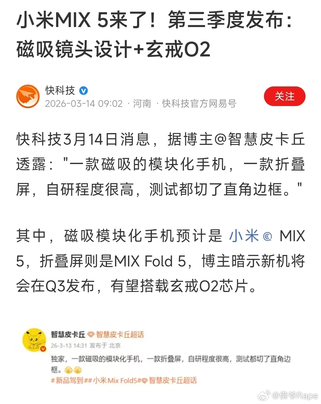 小米mix5这次真的要来了!采用模块化设计,如果真心长这样的外观,你会忍不住冲吗?更还有小米折叠屏Mixfold;这样的俩款新机有着自研玄戒02的加持,会不会更丝滑玄戒02小米MIX5小米小米手机玄戒小米mixfold5 有点东西数码闲聊站民间艺术观察