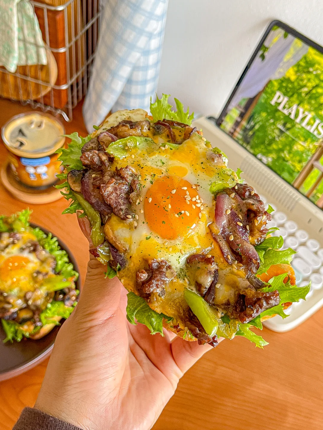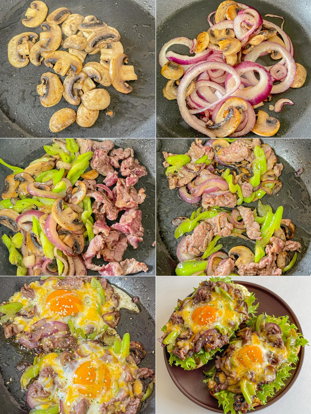 又幸福了~春天吃漂亮三明治🍳 做法简单 营养丰富~ 一口下去多重口感[亲一个R] 食材:🥖 恰巴塔➕口蘑➕生菜➕牛肉➕洋葱➕芝士片➕无菌蛋 做法:🥣 1.牛肉用适量生抽 蚝油 黑椒海盐 抓拌均匀 腌制1备用 2.口蘑和洋葱变软后 放入青椒和牛肉翻炒均匀 打入鸡蛋 放上芝士片 盖上盖子焖至鸡蛋凝固即可 工作日的理想brunch了 碳水 膳食纤维 蛋白都有了 一口咬下去 层次丰富 幸福感拉满![赞R]