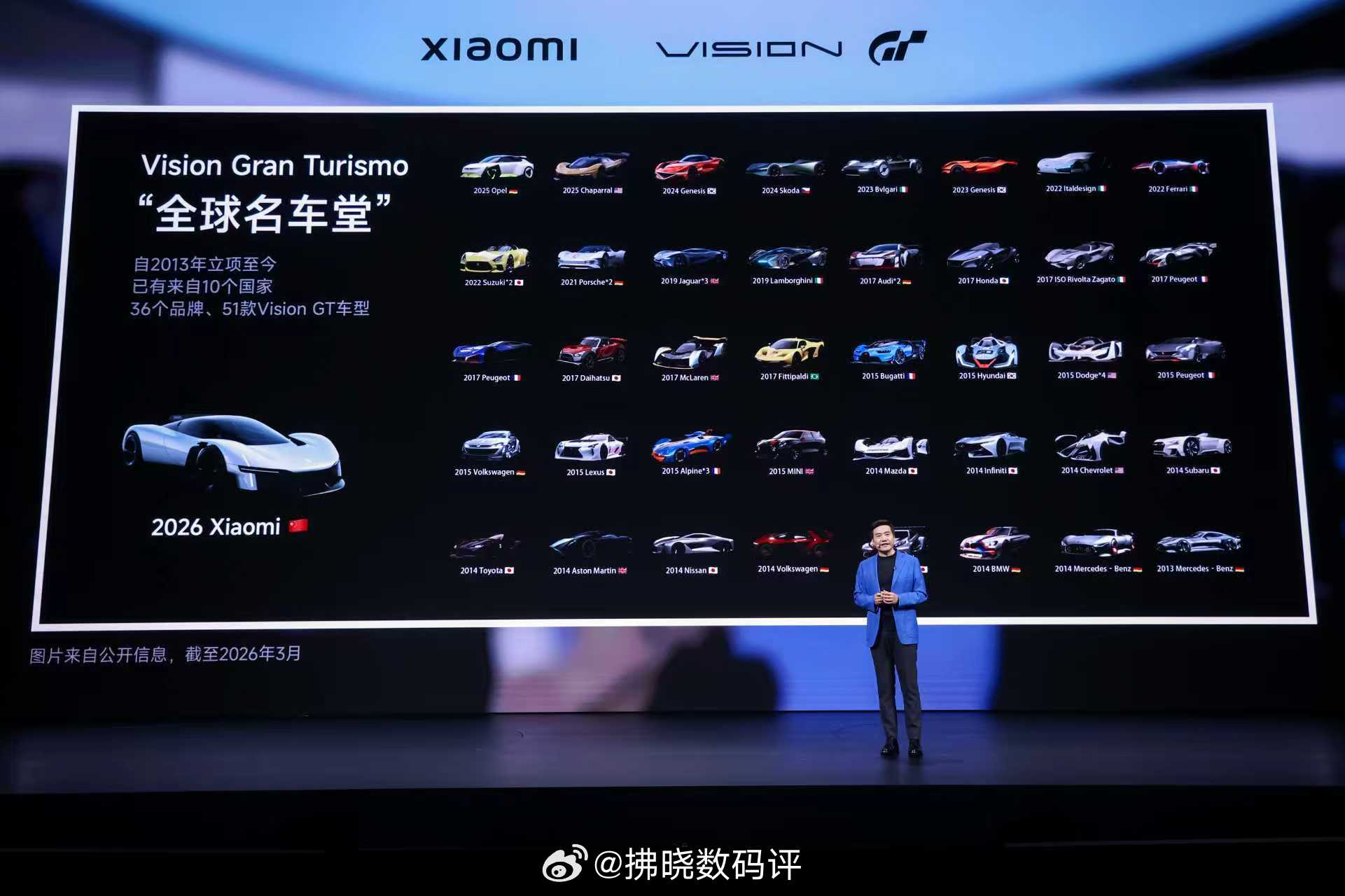 小米春季新品发布会正在进行时,又来听我雷总讲车了!简单回顾一下小米这两年在车圈都做了什么。第一代SU7于2024年3月28日正式发布,发布24小时大定88898台,累计交付38.1万台。不止于此,之后小米SU7Ultra 原型车跻身纽北赛道官方圈速榜总榜全球第三。而就在不久前的 MWC 2026上,小米VisionGT 正式亮相,直接跻身全球概念车设计殿堂。而这,还只是刚刚开始......新一代SU7小米新一代SU7今日发布