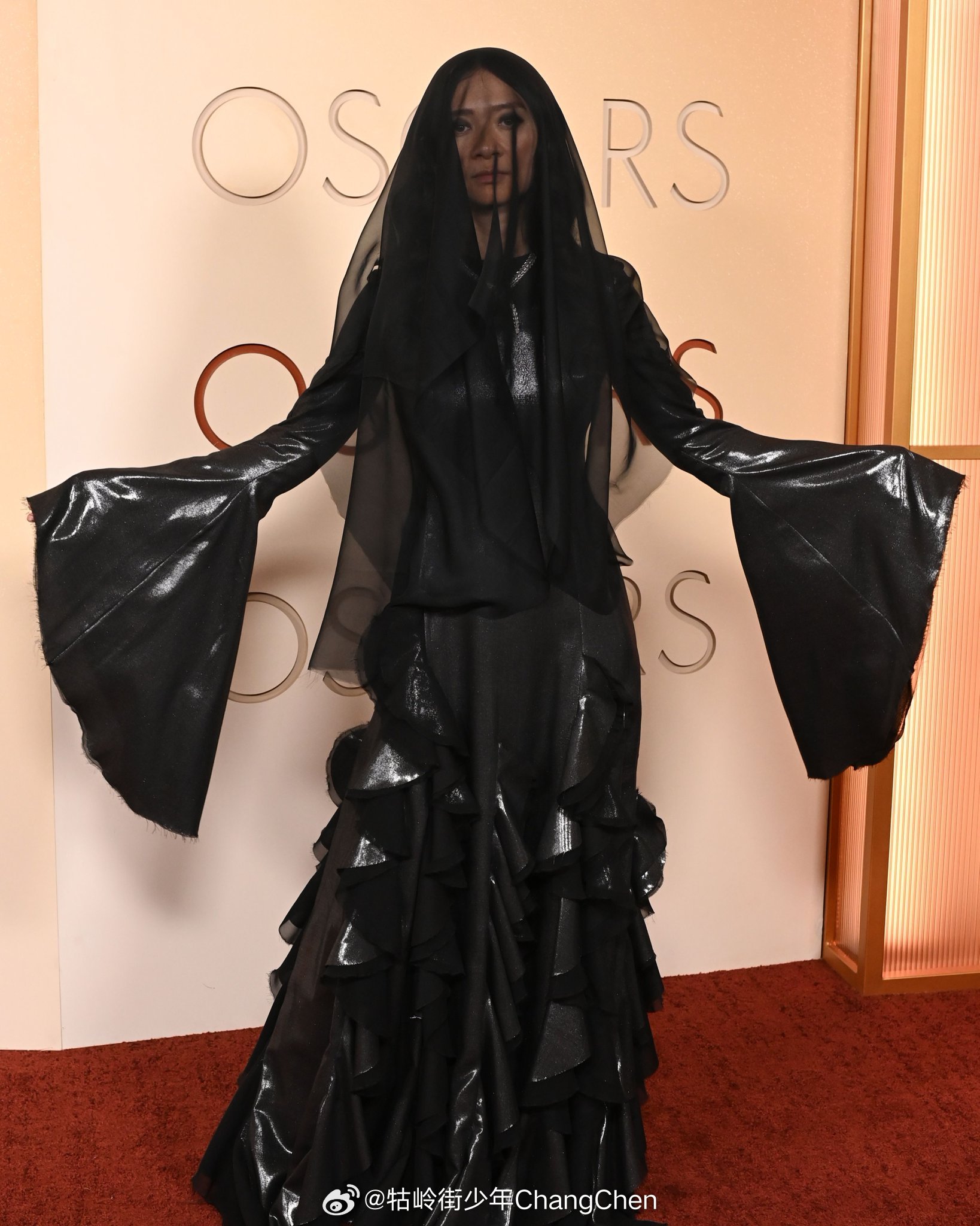 赵婷解释为什么穿这件黑色礼服参加奥斯卡颁奖典礼:“感谢加夫列拉·赫斯特(Gabriela Hearst)为我打造奥斯卡礼服,也感谢你如此深刻地懂我。有天夜里,一只渡鸦闯入我的梦境,她的身影一直萦绕在我心头。与她“共处”数周后,她向我传递了清晰的讯息:让该逝去的,安然逝去;静立于冬日的寂静之中,让所有物质与经历,都腐化成滋养新季节的沃土。去学习应对这段“腐烂过程”中不适所需的仪式与方法。而你必须这么做——因为若不如此,拥堵与停滞便会肆虐,无论是在生态系统里、社会中,还是一个人的精神世界。因此,穿着这件礼服出席《哈姆奈特》(Hamnet)的最终盛典,对我而言意义非凡。”