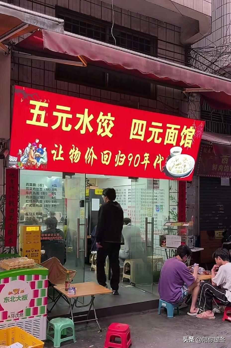 5元水饺,4元面,日赚1000元! 广州这家小店凭实在火了!5元15个饺子,4元面,最贵是8元烧鸭粉,老板每天工作15小时,靠走量赚辛苦钱,不炒作不扩张,真诚就是最好的招牌! 3月19日,据九派新闻报道,一名来自江苏的张先生在广州开了一家小吃店火了,价格低到离谱,他说“要让物价重回90年代”,他真的做到了![赞] 当记者询问其是否赚钱时,他开心的说道“纯利润日均能赚1000元”,并声称自己不是做慈善的,只因为店开的比较偏僻,房租也比较便宜,所以定的价格也比较便宜,主要靠薄利多销,以跑量为主! 张先生还透露,从1月开张以来已经有2个月没有休息了,都是从上午11点干到凌晨2点,主要客源都是学生、老人、还有一些农民工,都是消费能力低的人群为主。 “2元的成本,吃起来安全吗?”在面对记者提出的食品安全质疑时,张先生充满信心的说道,自己的水饺都是在大平台采购的,有大品牌背书,而且自己也试吃过,没有“科技与狠活”比较放心。 真的不敢相信呀,在广州这个一线城市还有这么便宜的小吃店,如今在三四线小县城估计都很难找到了吧?希望这样的店越来越多,惠及到更多的民众! 祝老板生意兴隆!广州饺子馆